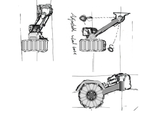 I started doing some more art design for the “Moon Truck” that is to appear in Lunatics, episode 3. This was loosely inspired by some NASA research work on large Moon rovers. The key point is that it is a highly-articulated wheel strut that allows for conforming to rough terrain: