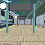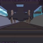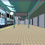 I’m not sure what the correct jargon word for these is, but I’m calling them “check” renders. Basically, this is a still frame of the animation with all the bells and whistles turned on (and the marker stamp layer for reference) — to see whether the visual quality is adequate, what the render time is per frame, and other details. I was thinking this shot would require more detailing to be added to the undercarriage of the train. But actually, I’m pretty happy with it like it is.