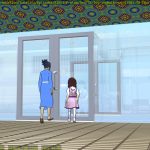 The Freestyle layer by itself now includes the color for the characters — this was the easiest way to get an alpha mask that would make sure Freestyle was the only ink on the characters (fortunately, in this shot, the characters do not pass behind any set elements, so I can just composite them on top — I’d need to be a bit more clever if they did, possibly using Z-combine, or Freestyle proxies, or something along those lines):