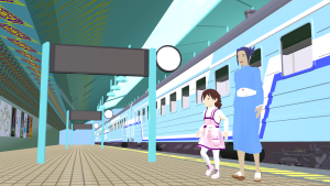 This shot is also missing a skyline backdrop in the far background, the extras (other people on the platform), and some additional set dressing.