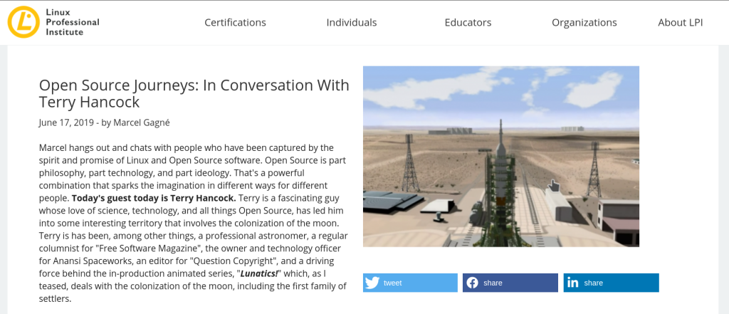 “Lunatics!” producer/director Terry Hancock was interviewed by Marcel Gagne for the Linux Professional Institute’s “Open Source Journeys” podcast earlier this year.