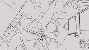 Today I’m working on the camera file for the “Soyuz Flight” interiors. This is ink and color, with the full EXR compositing setup that I’m planning to use. It’s basically recreating the default result in Blender, but with the EXR workflow, it will be possible to tweak certain things, like the intensity of the reflections in the helmet visors, in the compositing stage, without having to re-render.