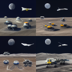 Unfortunately, I don’t think MidJourney will be much use for the Moon. My attempts to create similar backdrops of the lunar environment have been disasters. I think there must not be enough NASA photos in MidJourney’s training set! It acts like it has seen more cartoon moons than real ones — and it keeps wanting to put the moon in the sky, too. Sometimes multiple times: