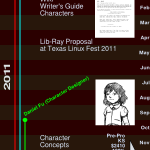 In October, I worked on a number of writing, editing, project history, and archiving projects. I also finished up some minor animation fixes needed for our pilot episode. I got some inspiration for a simpler architecture to break through my block on the LIb-Ray project. And I created some promotional video loops based on the existing “turnaround” animations I have for the six adult principal characters for Lunatics.