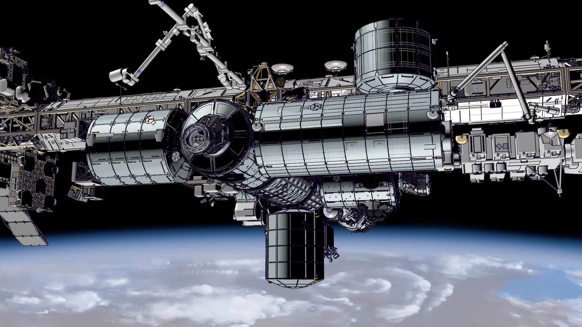 However, looking back on it, I too have to agree that it could be improved a lot, and I’d like a more Freestyle/NPR look better. So, I’ve decided to go further in that direction. This is far more demanding on the hardware (we’re going to need that cluster to animate in this style), and requires quite a bit more work in the rendering process, but I think the results are worthwhile (like the ISS model I’ve illustrated this post with).