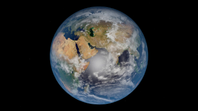 Do you see the skull? Total coincidence! It’s just the way the cloud cover and Africa look from that angle. No really! I actually spent some time trying to get rid of it by changing the angle. But then I noticed that it coincided with the “space is a scary and dangerous place” line, and realized that a subliminal skull was probably okay!