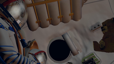 This is from the first teaser trailer, showing the “Soyuz-SF” control console, which is loosely based on the present-day “Soyuz-TMA” “Neptune” console. The main difference is that we’ve converted some of the less-critical button arrays into to touchscreen panels.
