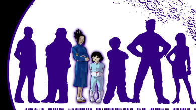 To visually communicate that we’re just telling Georgiana and Hiromi’s story here, but that there will be others later, I hit upon this concept of showing these main characters, and fading them into the silhouette line-up with the others in the logo.