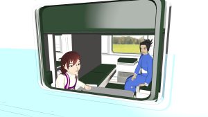 This helps to get over errors in animation, and allows us to use simpler models.- SLIDE 16 – Hiromi & Georgiana on train