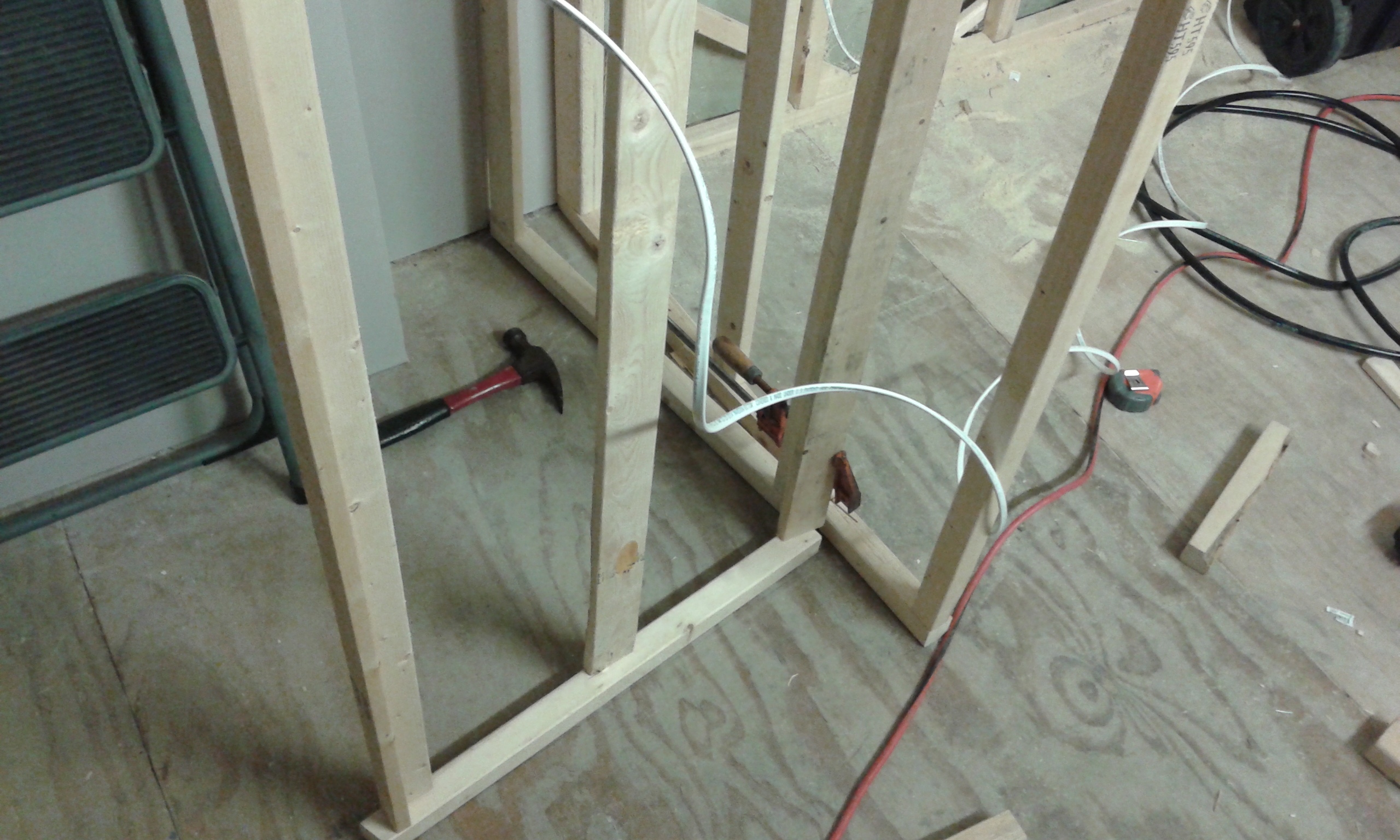 This month, I worked on insulation of the outer walls, and framing the new sound booth (a sound-isolated closet meant for recording).