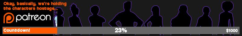 I tried creating an Patreon-API based “progress bar” to put on the release website, to drive traffic to Patreon and try to gamify the fund-raising a little bit. If I had got it fully working, it would’ve gone through phases, first revealing silhouettes of the characters, and then revealing full-color images of them.