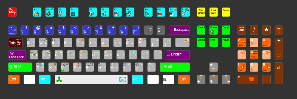 I loved that thing, but it had seen better days. So I ordered a nice mechanical keyboard from WASD Keyboards, which among other things, lets you custom-design your keycaps. How could I resist this temptation? So I designed it with lots of fancy icons for Blender, Ardour, and Audacity.