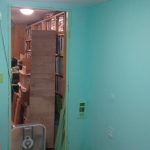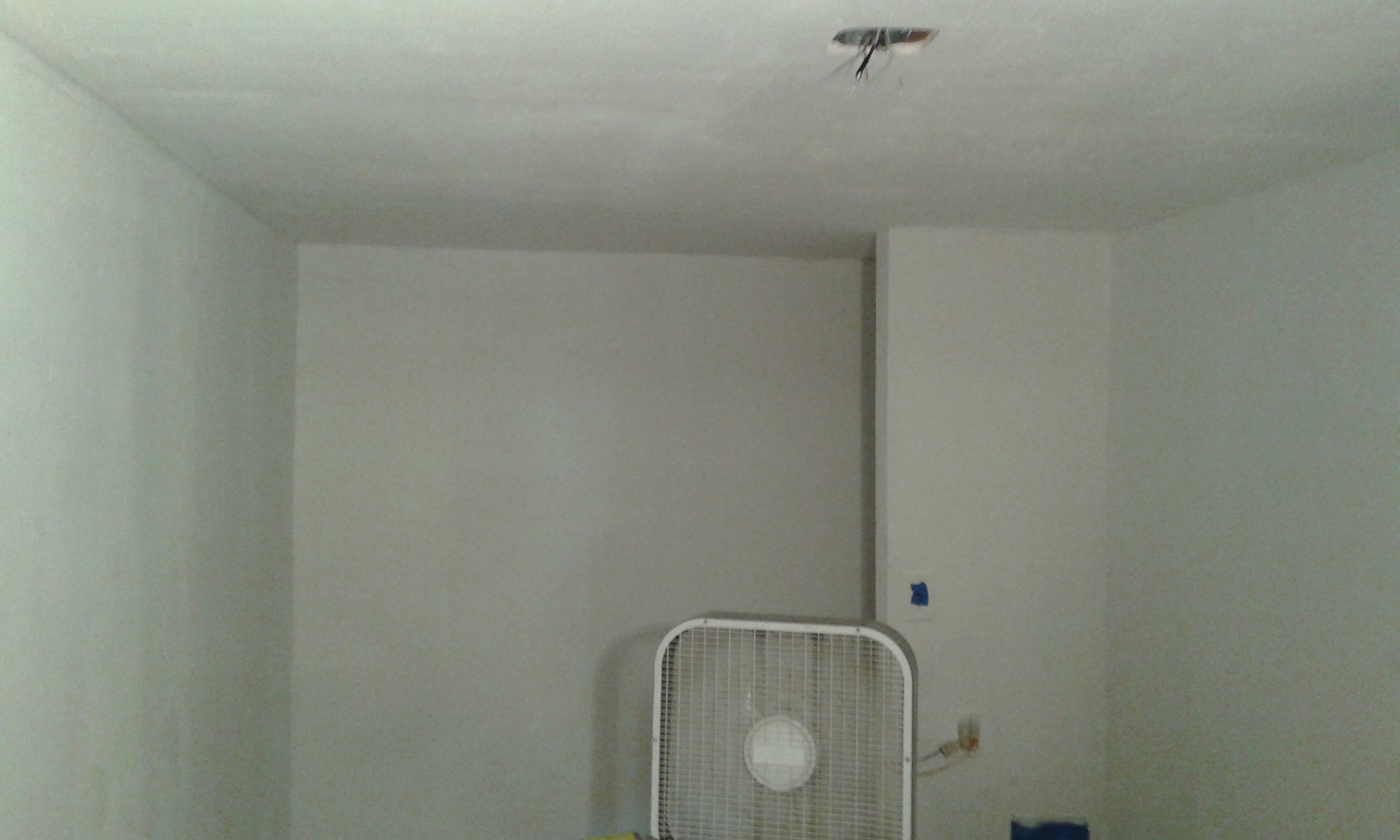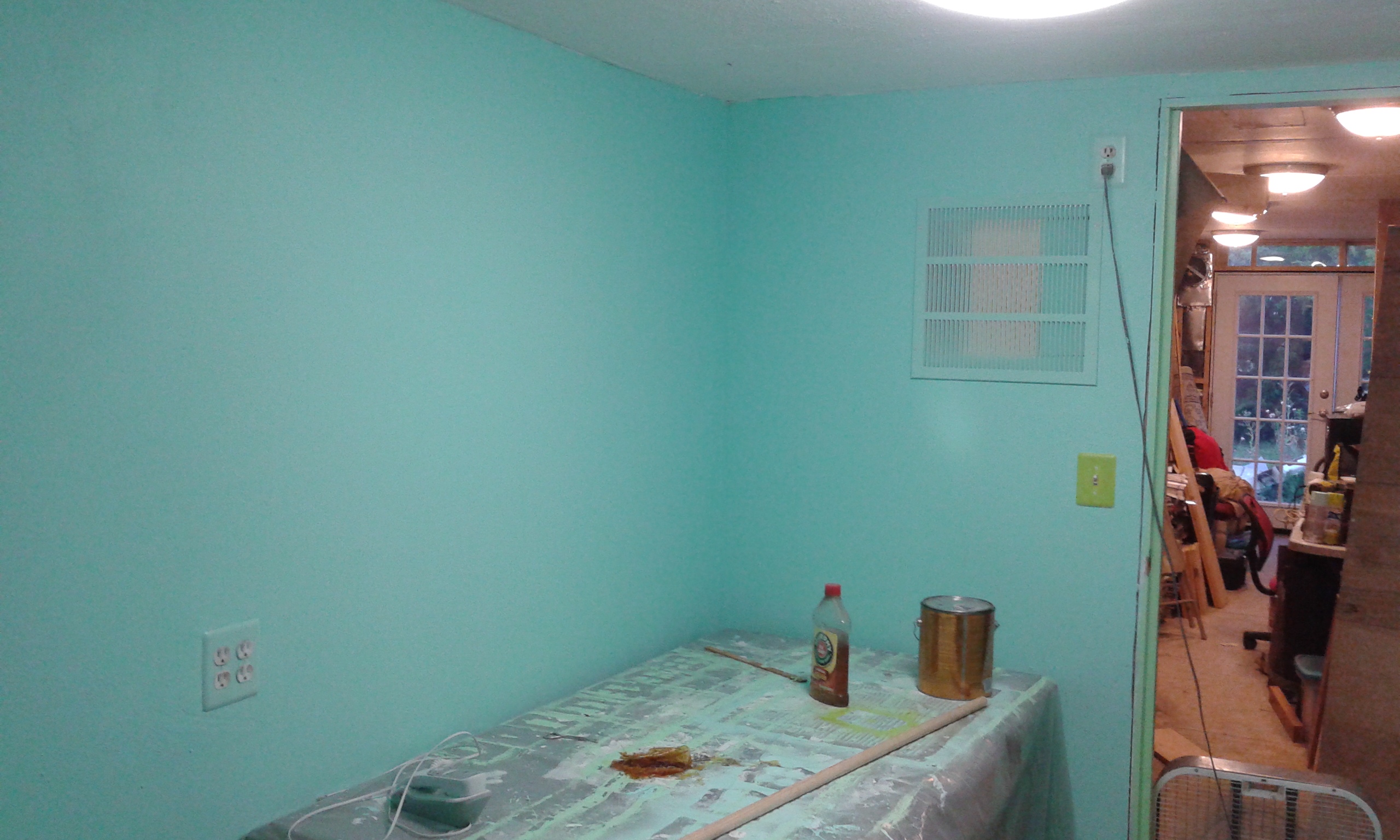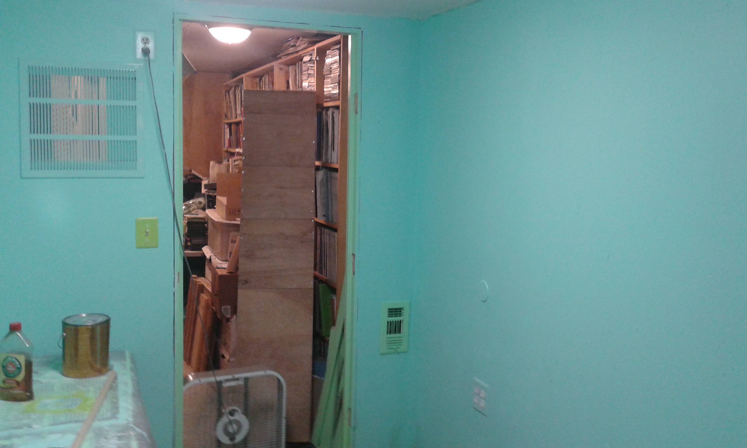 Re-painting the office. First, I scrubbed the walls as thoroughly as I could. Then I applied a special fire-damage cover paint as a primer. I also learned to use a heat gun to strip paint — I needed that to get the old paint off of my office door (which is a vintage six-panel solid door I picked up from the Habitat for Humanity “Re-Store” in Fort Worth):