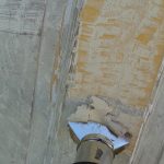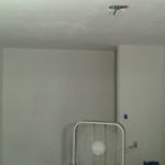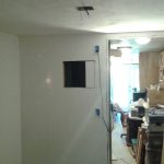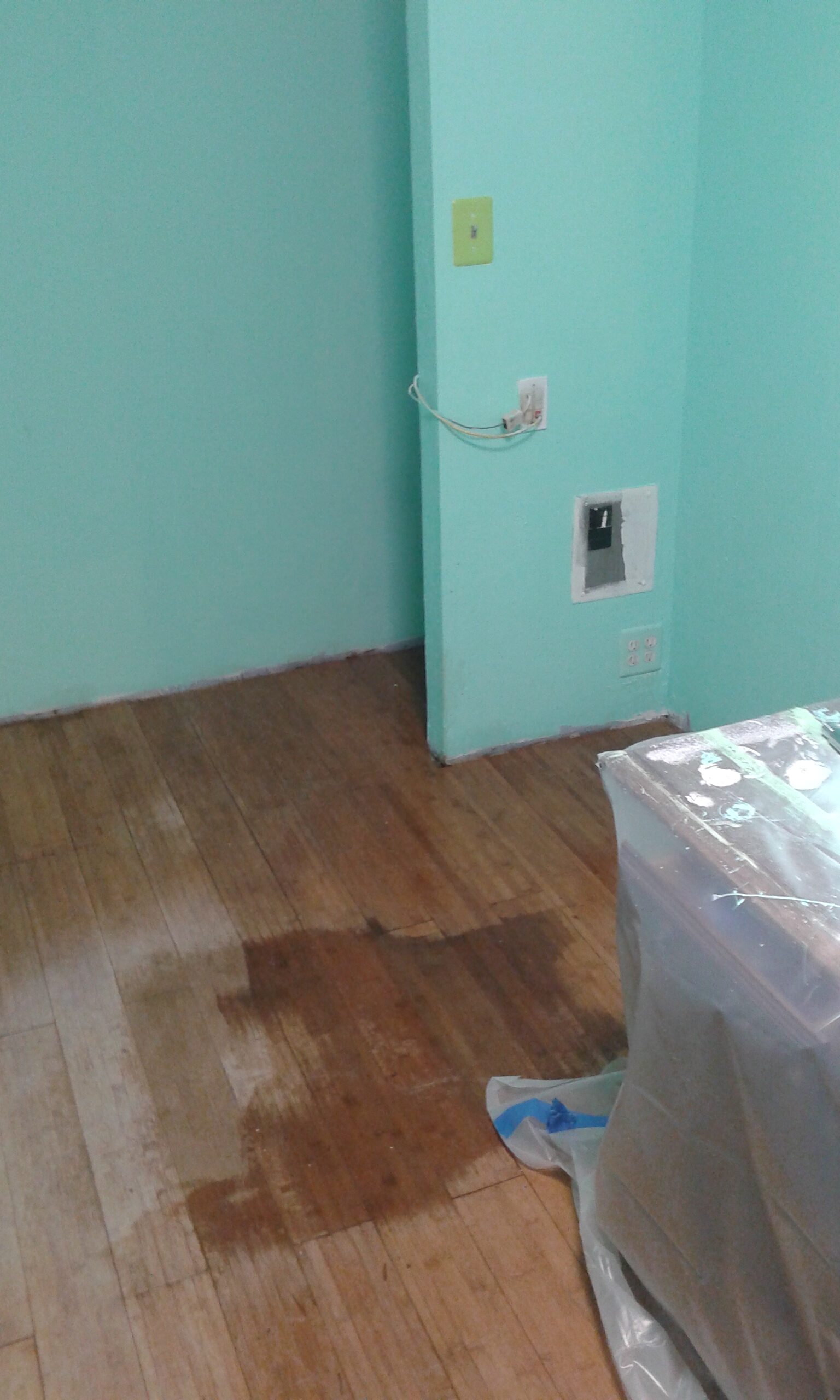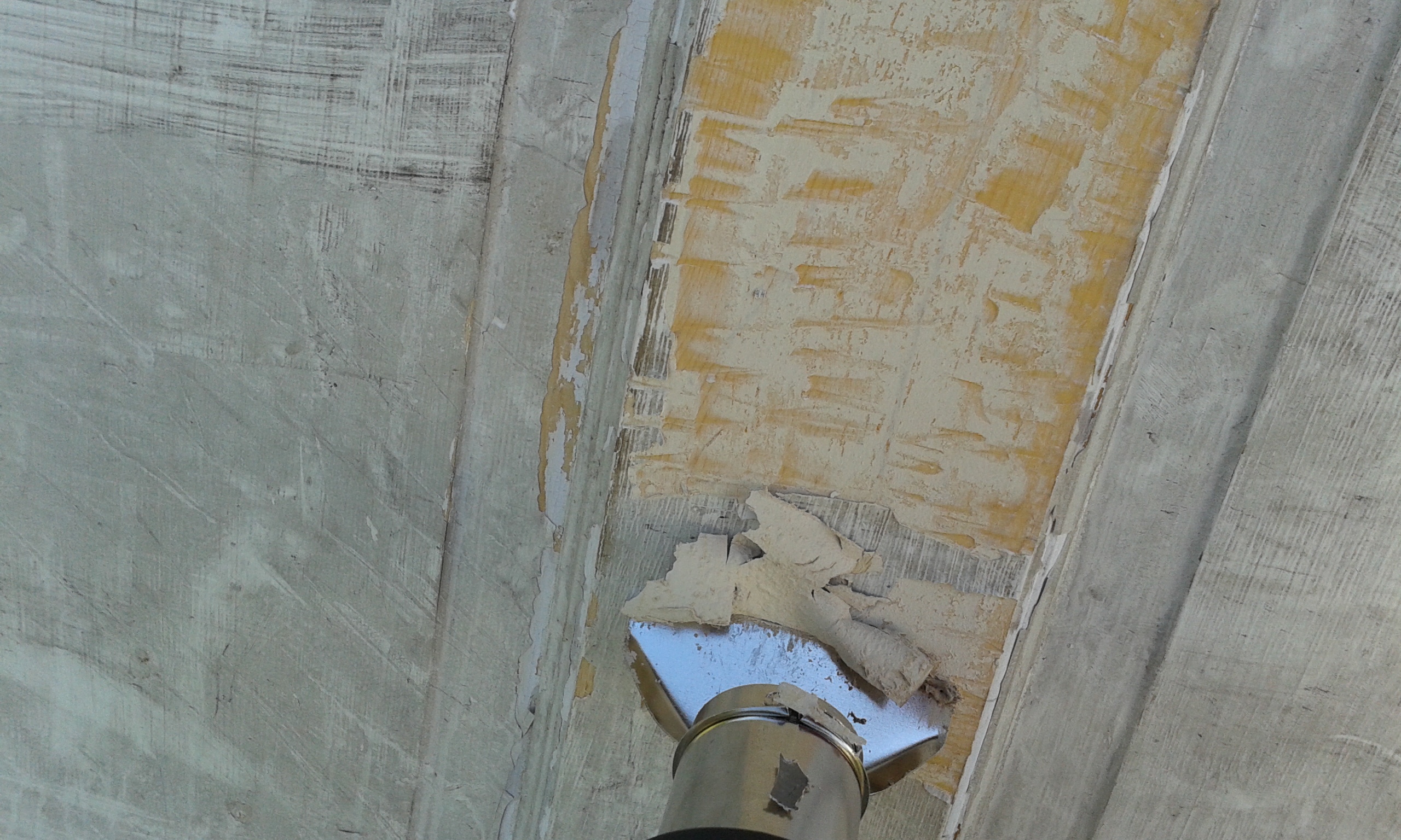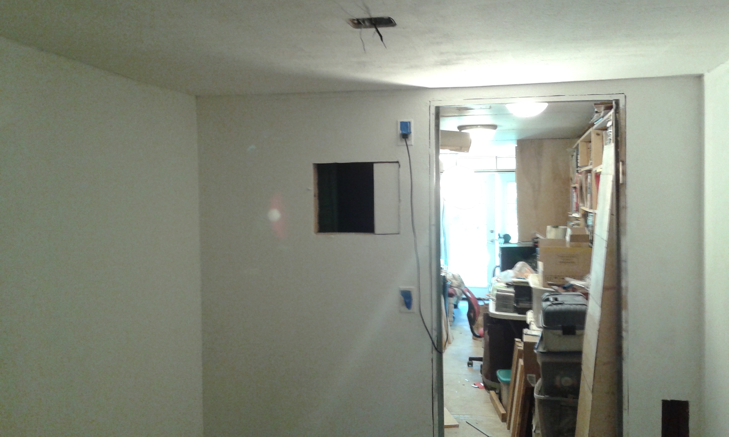 Re-painting the office. First, I scrubbed the walls as thoroughly as I could. Then I applied a special fire-damage cover paint as a primer. I also learned to use a heat gun to strip paint — I needed that to get the old paint off of my office door (which is a vintage six-panel solid door I picked up from the Habitat for Humanity “Re-Store” in Fort Worth):