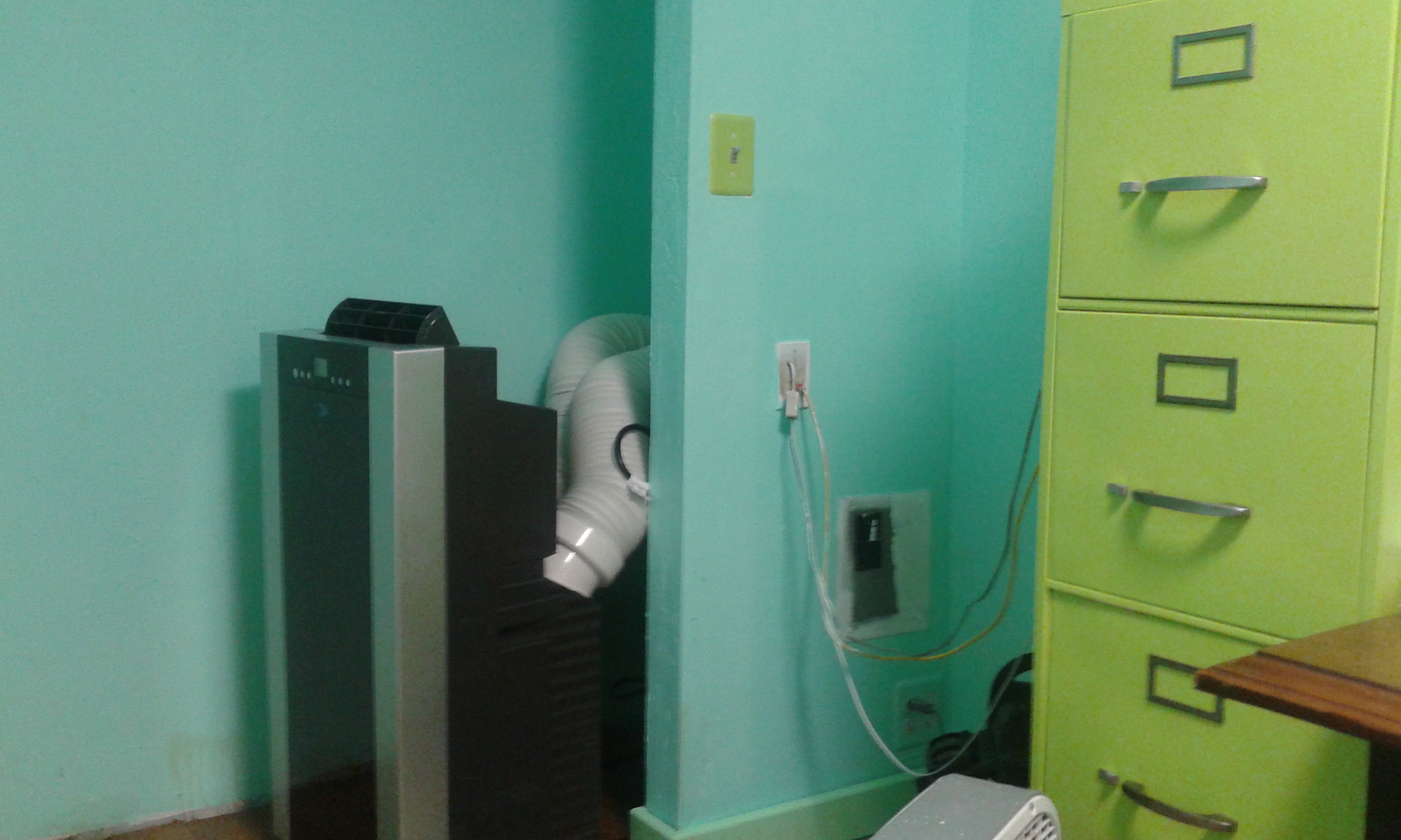 Appearance, with the desk, computer, and one file cabinet moved in: