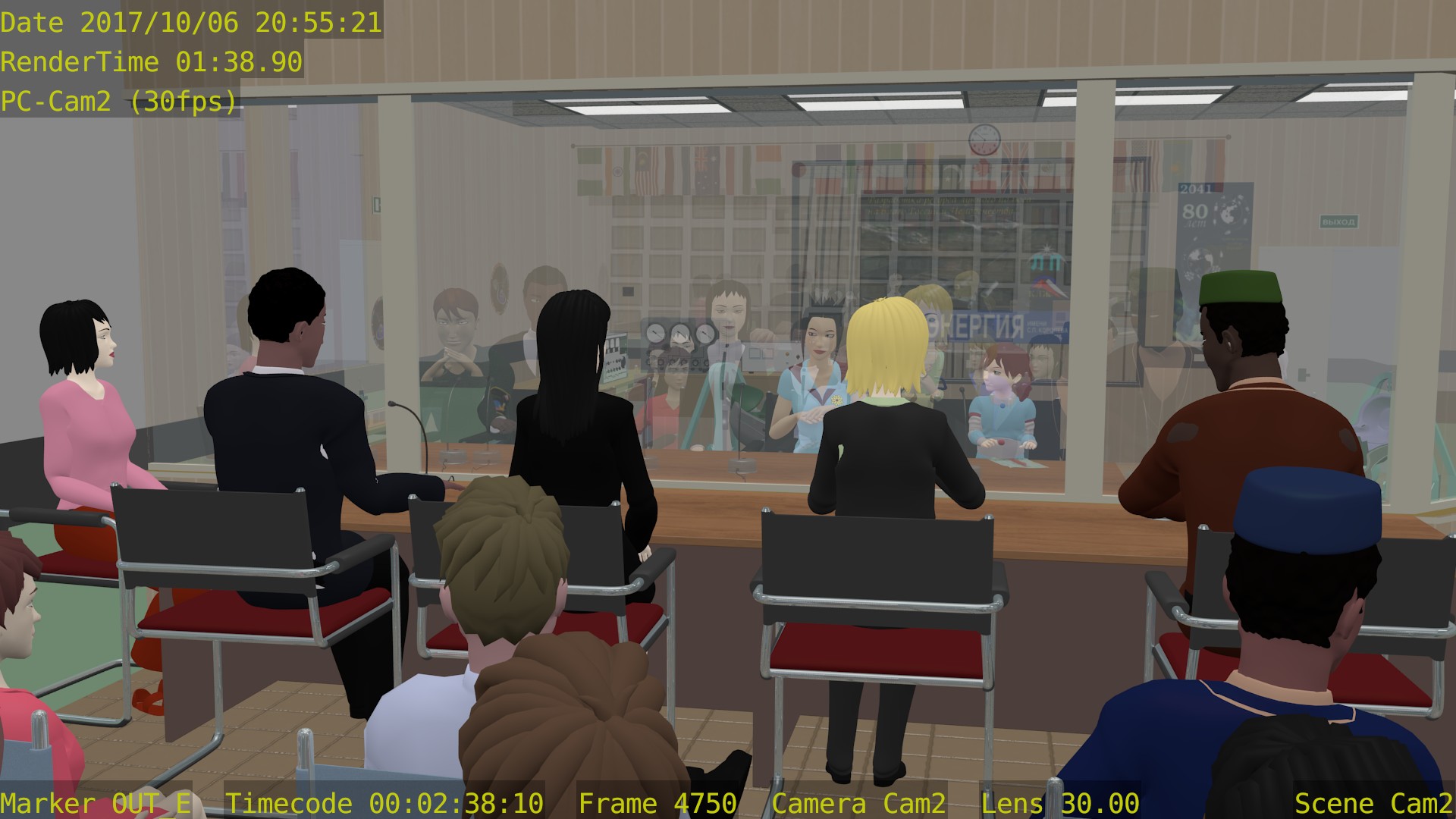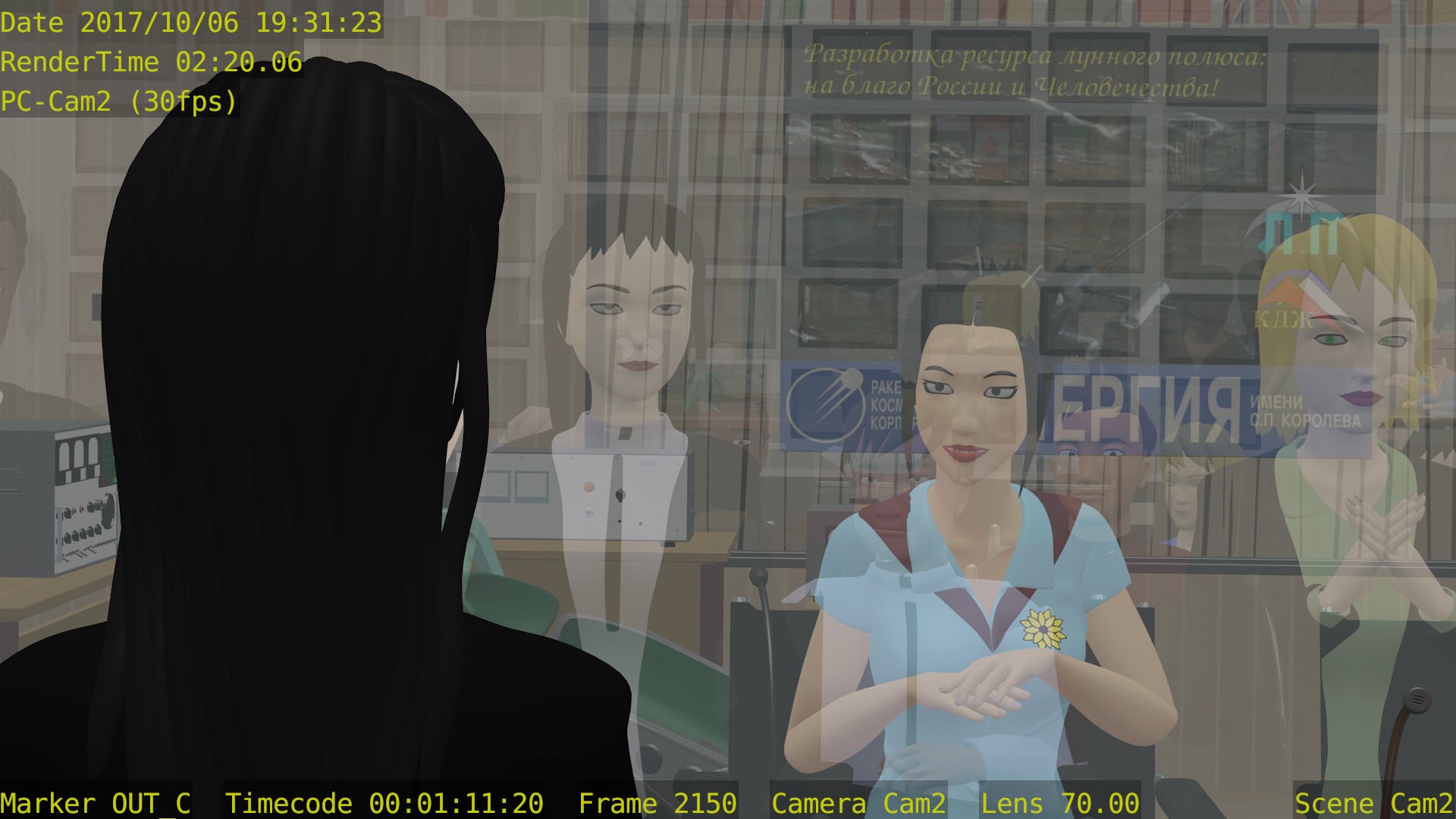 We’re moving into finishing sets for “Part 1”. This is the mission control center, with the monitors assigned (108 total!). A few of them are animated, while most just have a small amount of flicker. (Extras will be added at the scene level).