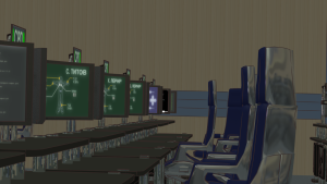 I wanted the monitors in mission control to look “live”, so a few of them are animated, and all of them have a slight flickering effect. This was much more noticeable with CRTs. I’m not sure that’s it’s very realistic to use with what are supposed to be LCD or OLED monitors, but it does look kind of cool.