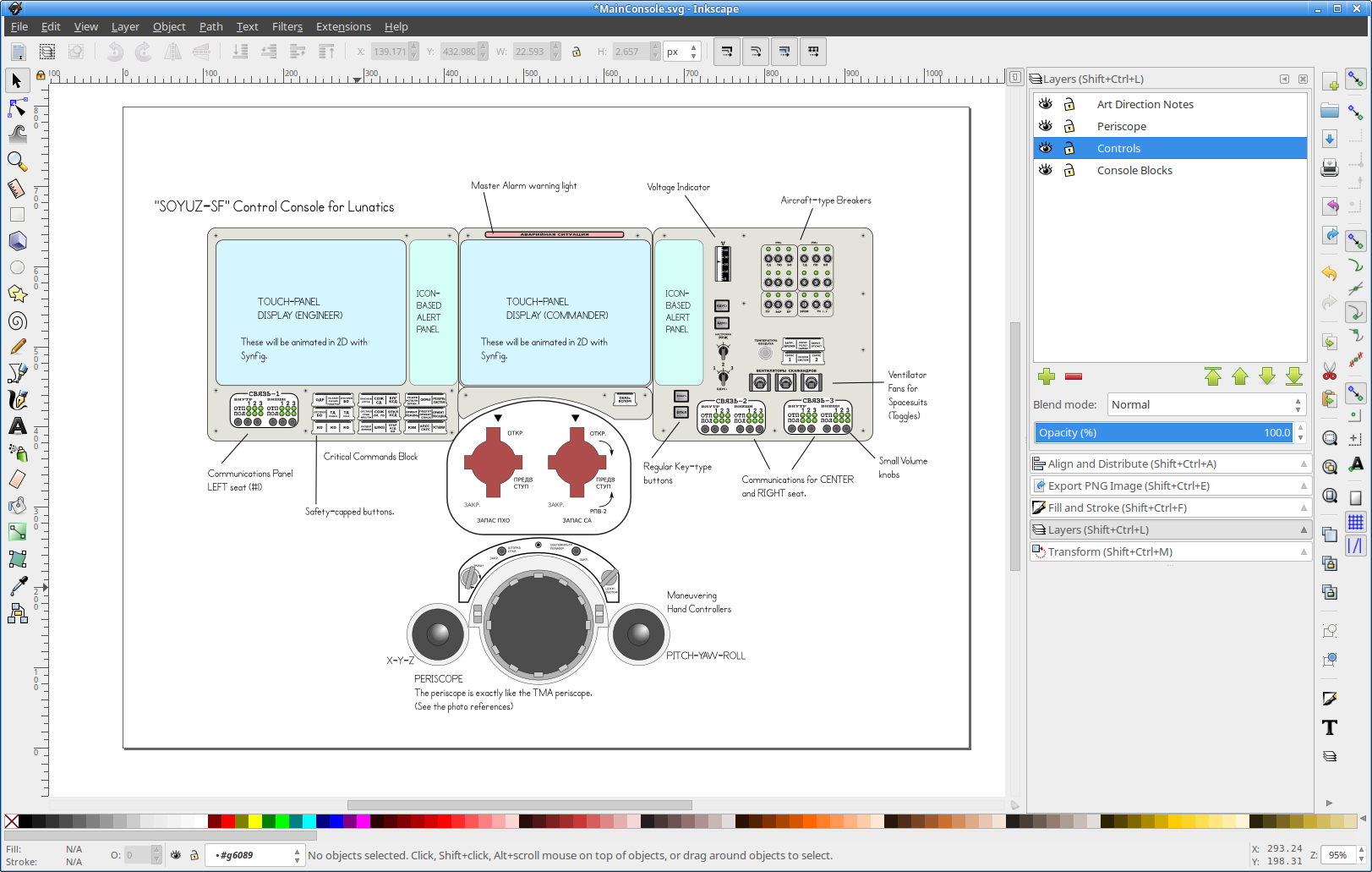 I spent hours looking for this yesterday. It’s one of the earliest of our mechanical art design works — the design (and label texture) for the Soyuz console (which we modeled in a pilot project in 2012). So I knew I would have to do some digging to find it. I noticed some misspellings in the texture used in the actual set file, and wanted to update it from this.