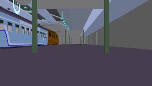 We had a really excellent recording of a train arriving in a station that I wanted to use on the audio track, but it was obviously from a covered terminal, from the ambient sound. So we decided that 25 years is enough time for them to build a covered station — and so that’s what we modeled!