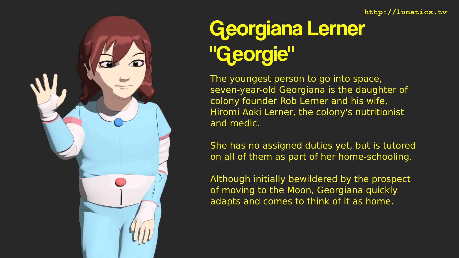 Georgiana Lerner is the youngest of the colonists, and becomes the youngest person ever to fly into space in the pilot episode, when she is just seven years old.