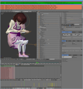 Her rigs, derived from the Rigify system in Blender (the free-software 3D suite we use for most of our animation work) but adding innovative new features, such as the skeletal face rig we are now using, which, along with the Blender Multicam technique and Papagayo NG tool chain, have made it possible to quickly animate complex character dialog and action scenes needed for our production.