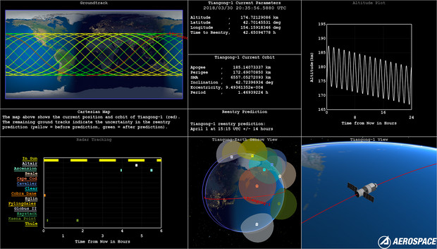 Tiangong-1 The world is watching as Chinese space station Tiangong-1 hurtles toward Earth and makes a fiery reentry. Chances that space debris will hurt anybody are extremely slim, although when and where the space station’s remains will land is still unknown.