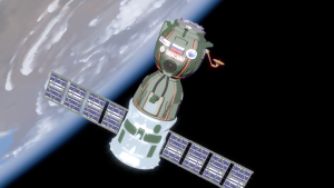This is a quick test render I did of the Soyuz orbiter model, composited with the space station model. This is a mock-up of a shot I’ve been thinking about using in episode 2.