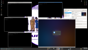What I created is a little staging universe, with a machine running my web server (upper left), a machine running my standard studio client (lower right), our on-site server (upper right), the render cluster leader (left), and a render cluster blade (lower left). They are connected through internal networking in VirtualBox so that they see each other as the “real” computer which they are meant to mimic.This means I can use a web browser on the studio client to view the website on the server, and test website features, file-sharing, version control access and so on. All without risking our live servers.