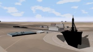 I’m pretty sure I’m going to have to do some fixing in the landscape model as well, though — I remember there being some alignment problems (in the distance, the railroad tracks switch from the modeled tracks from the “mech” model to drawn lines on the ground surface — which is touchy to line up and looks pretty funny if it’s not done right.