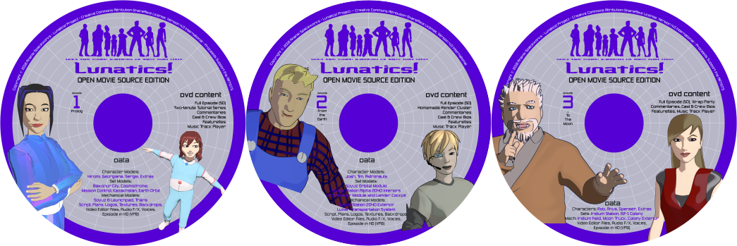 - Disk and jacket art designs for Open Movie edition of “Lunatics!” episodes 1-3.