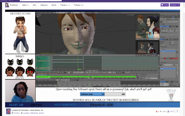 Keneisha Perry recently streamed a bit of her character animation work on her Twitch Site. She’s planning to do more in the future, along with her other modeling and animation activities.