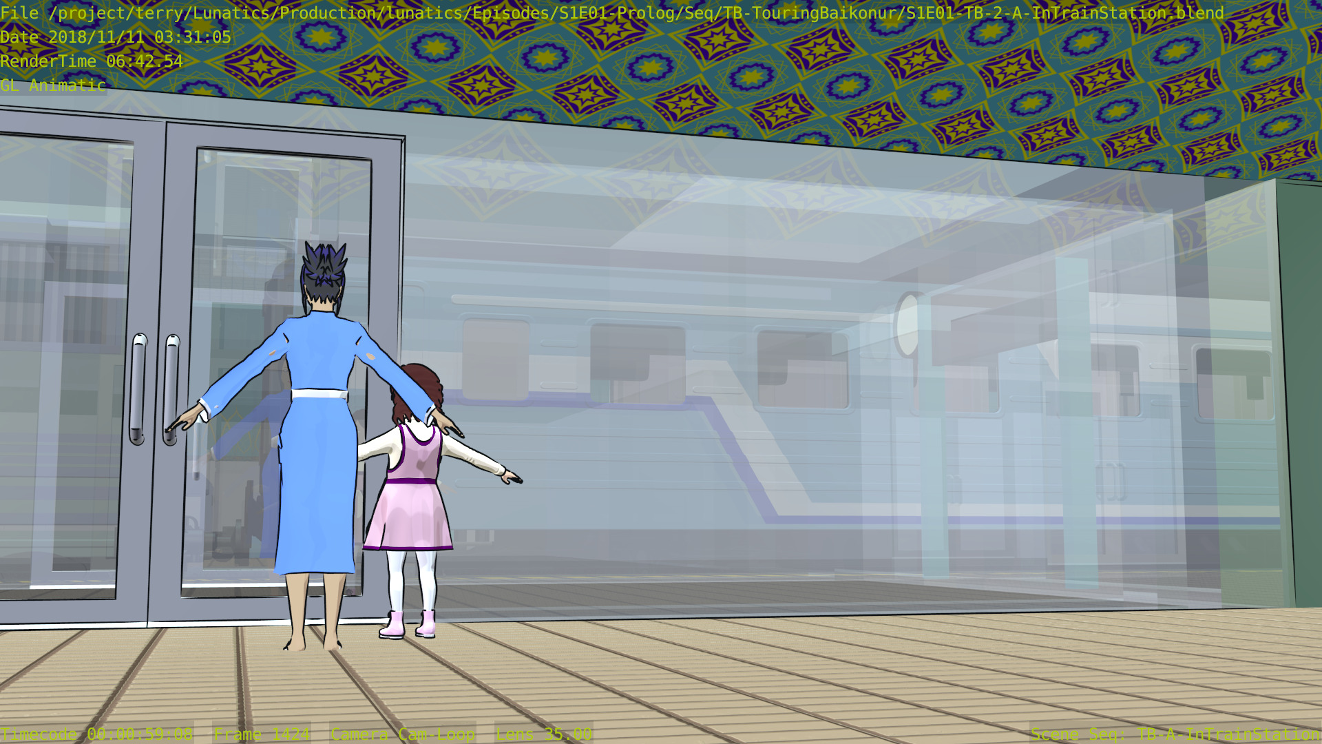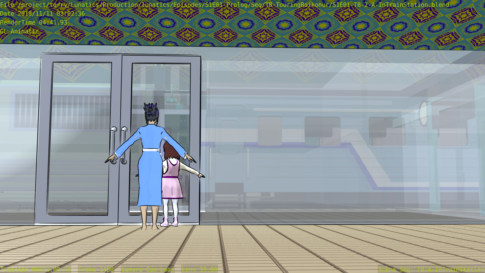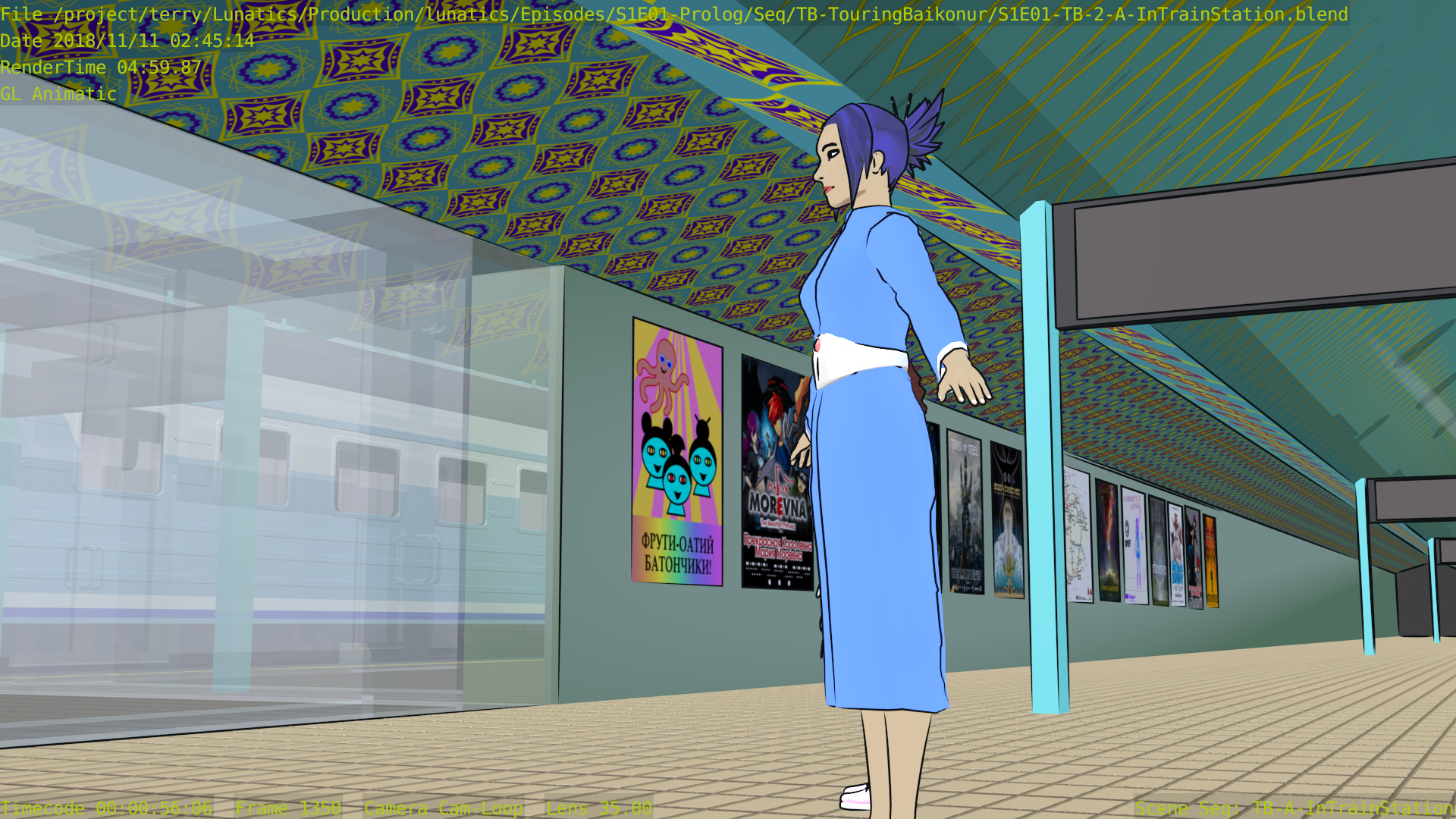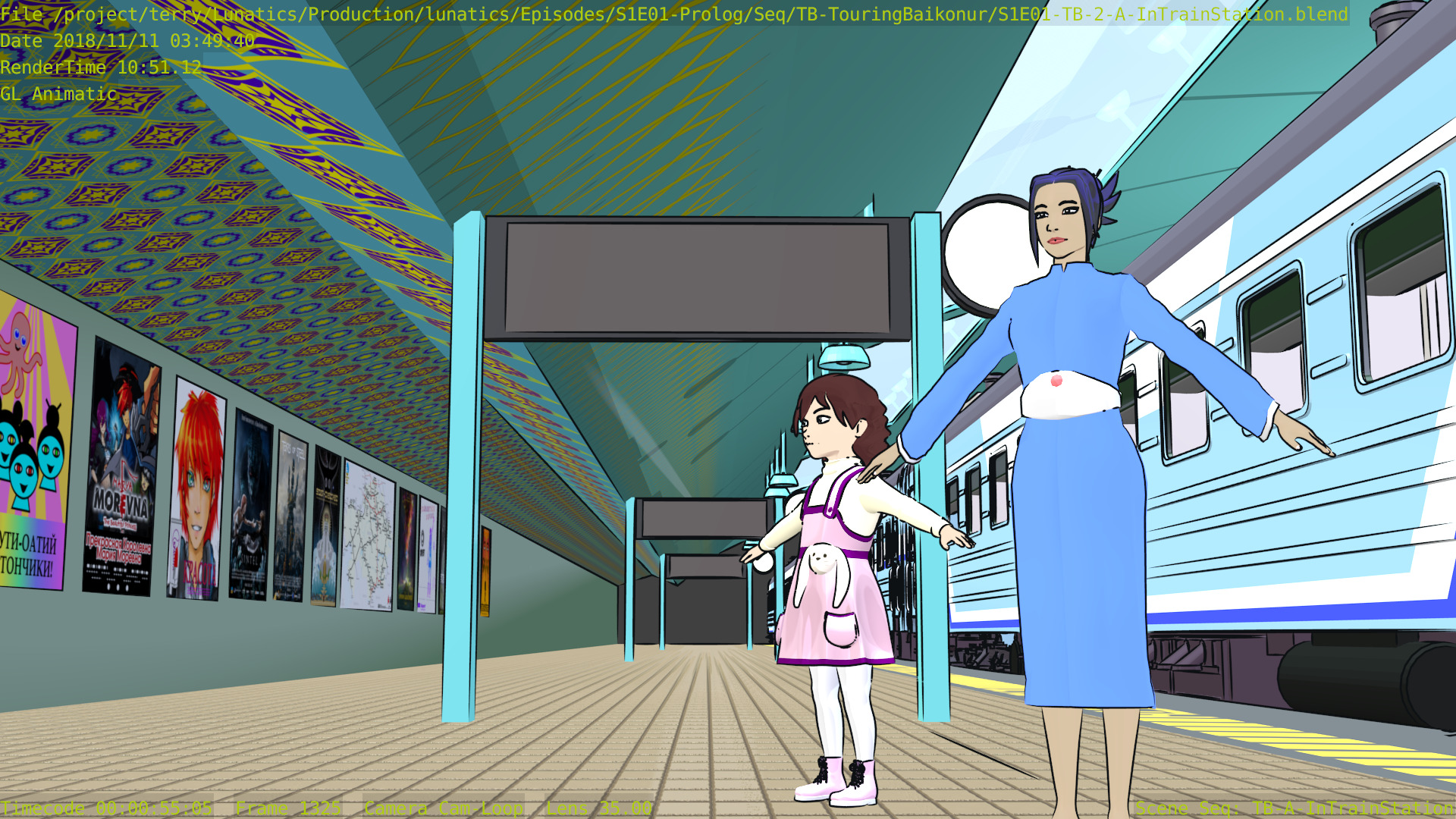 Revised toon materials and Freestyle ink lines. In train arrival shot.