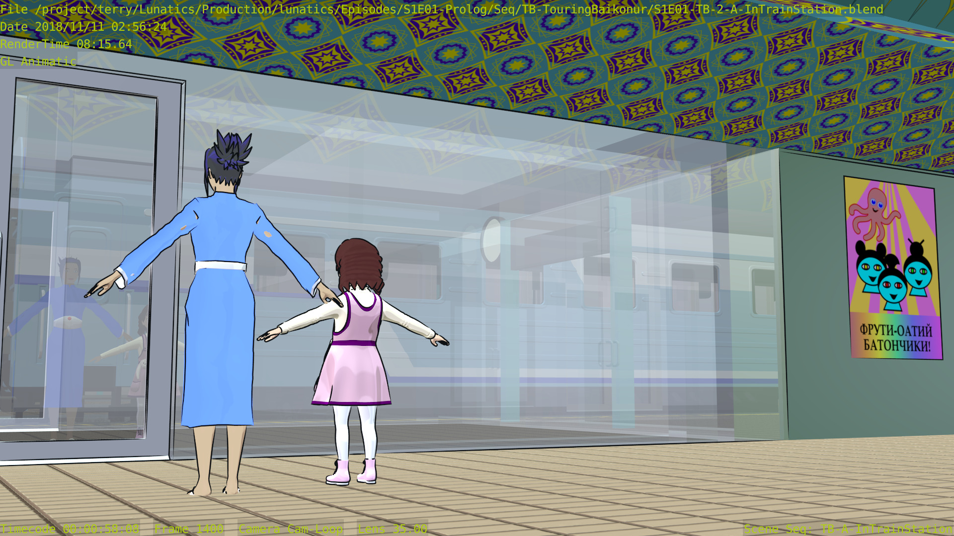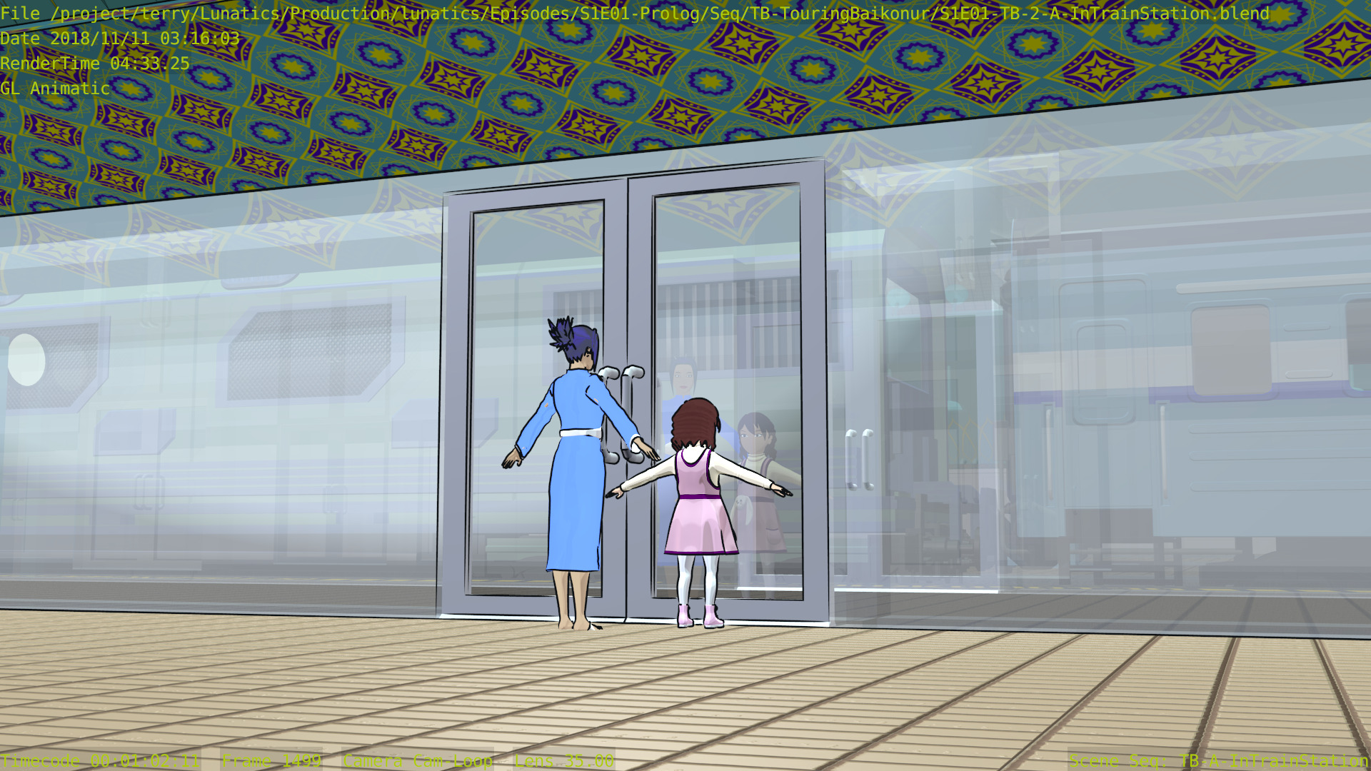 Regrettably, the first shot of Georgiana on the train is pretty badly broken. We already have a usable render of that shot, but it would have been nice for the source to still work. This seems to be a real challenge: keeping Blender files in working order as small changes accumulate in the assets.
