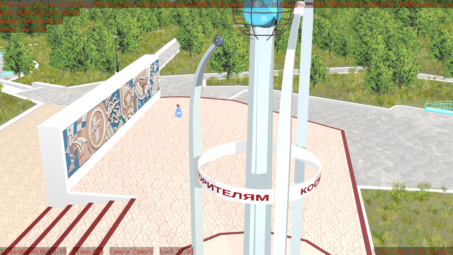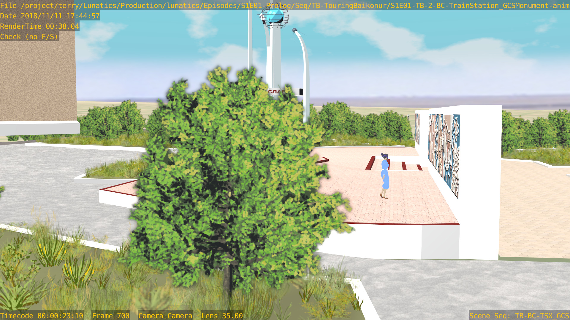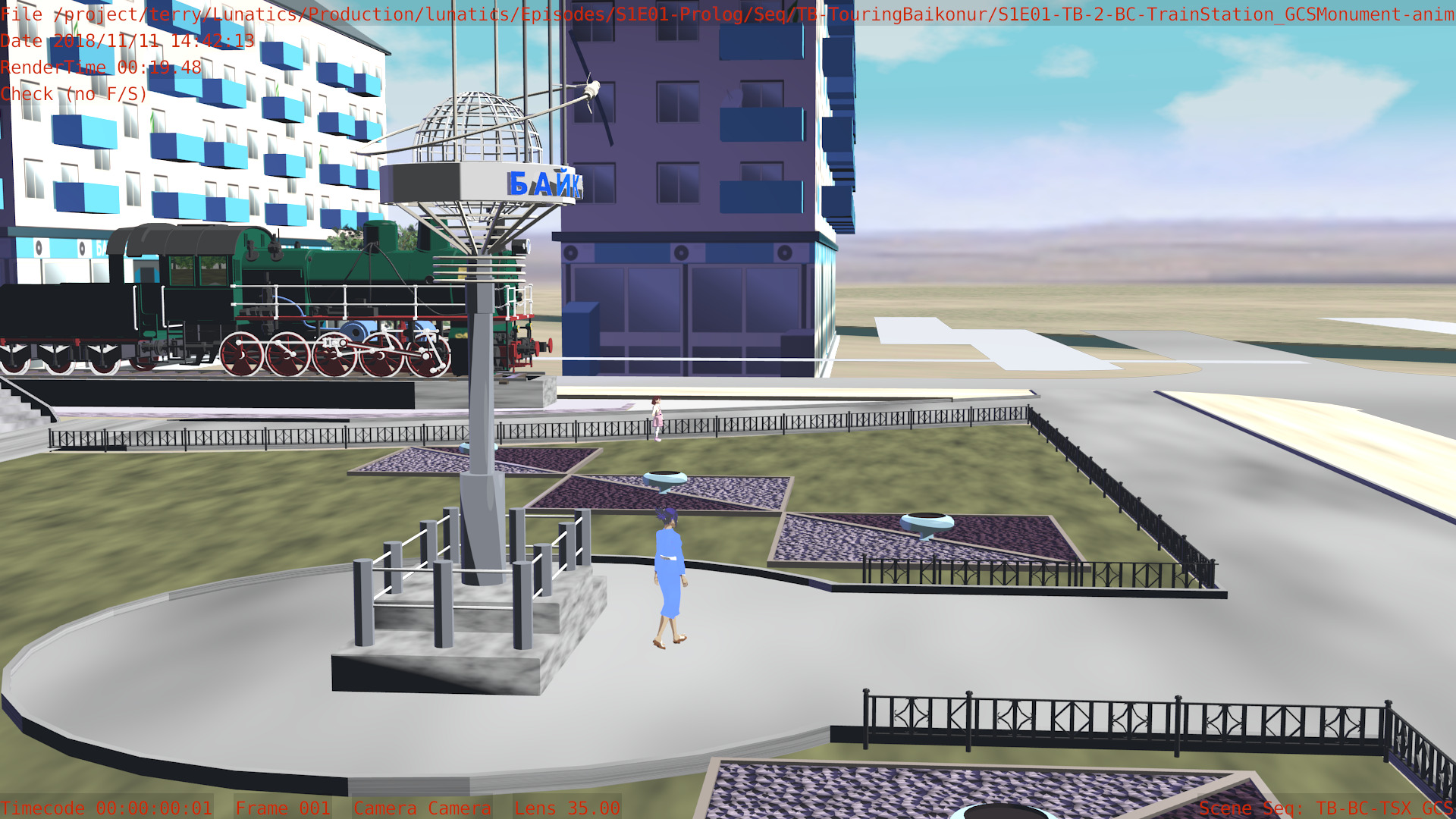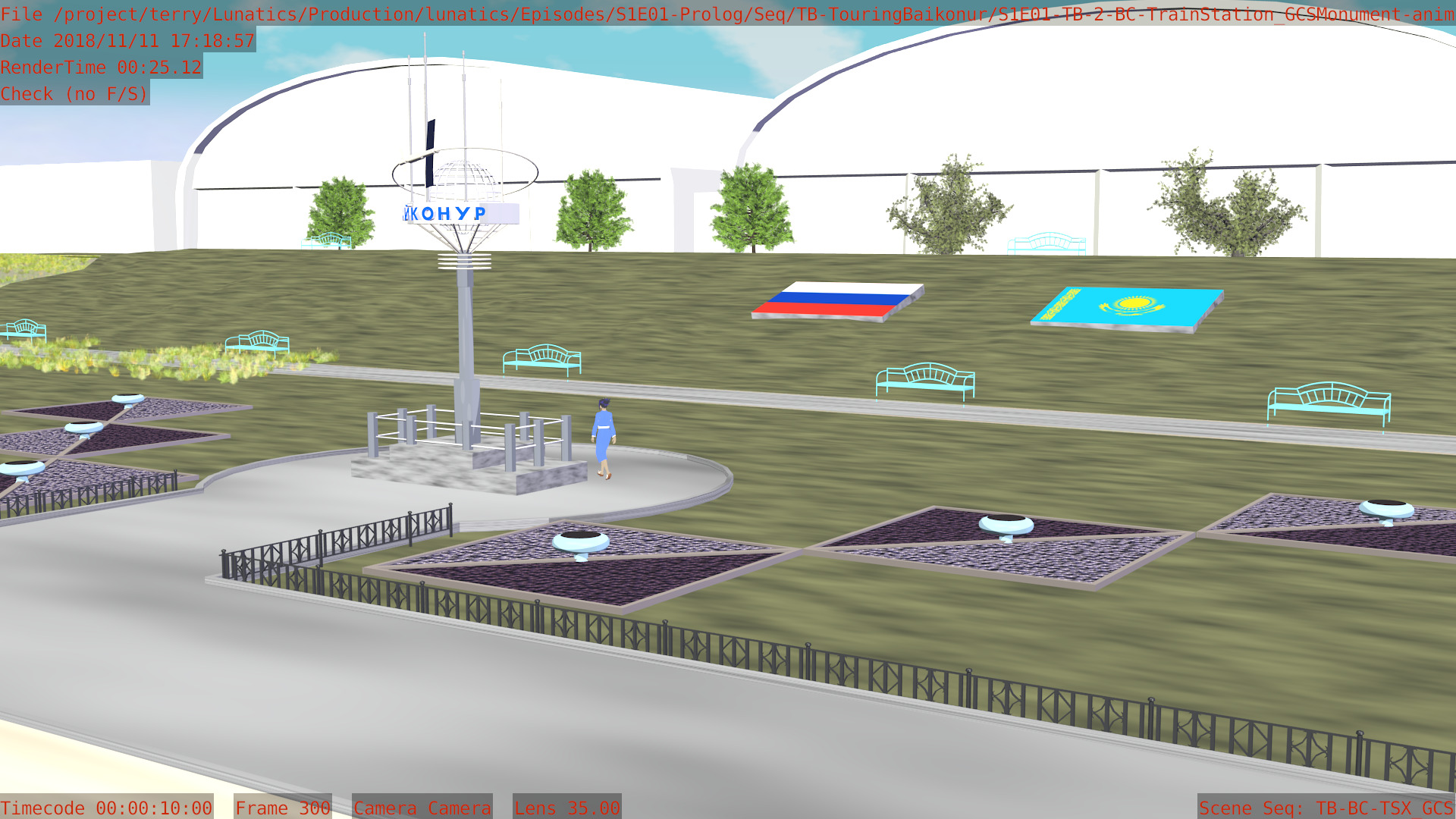 Or, we can have a non-sync “montage”, in which the animation files are accessed by a lot of separate “shot” scenes in the camera file. Like this one, for the “Touring Baikonur” sequence: