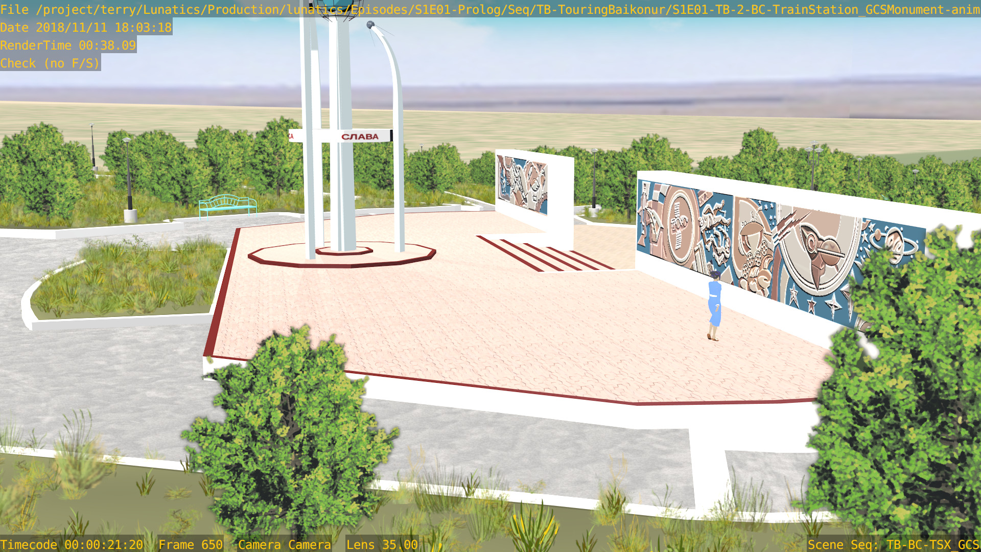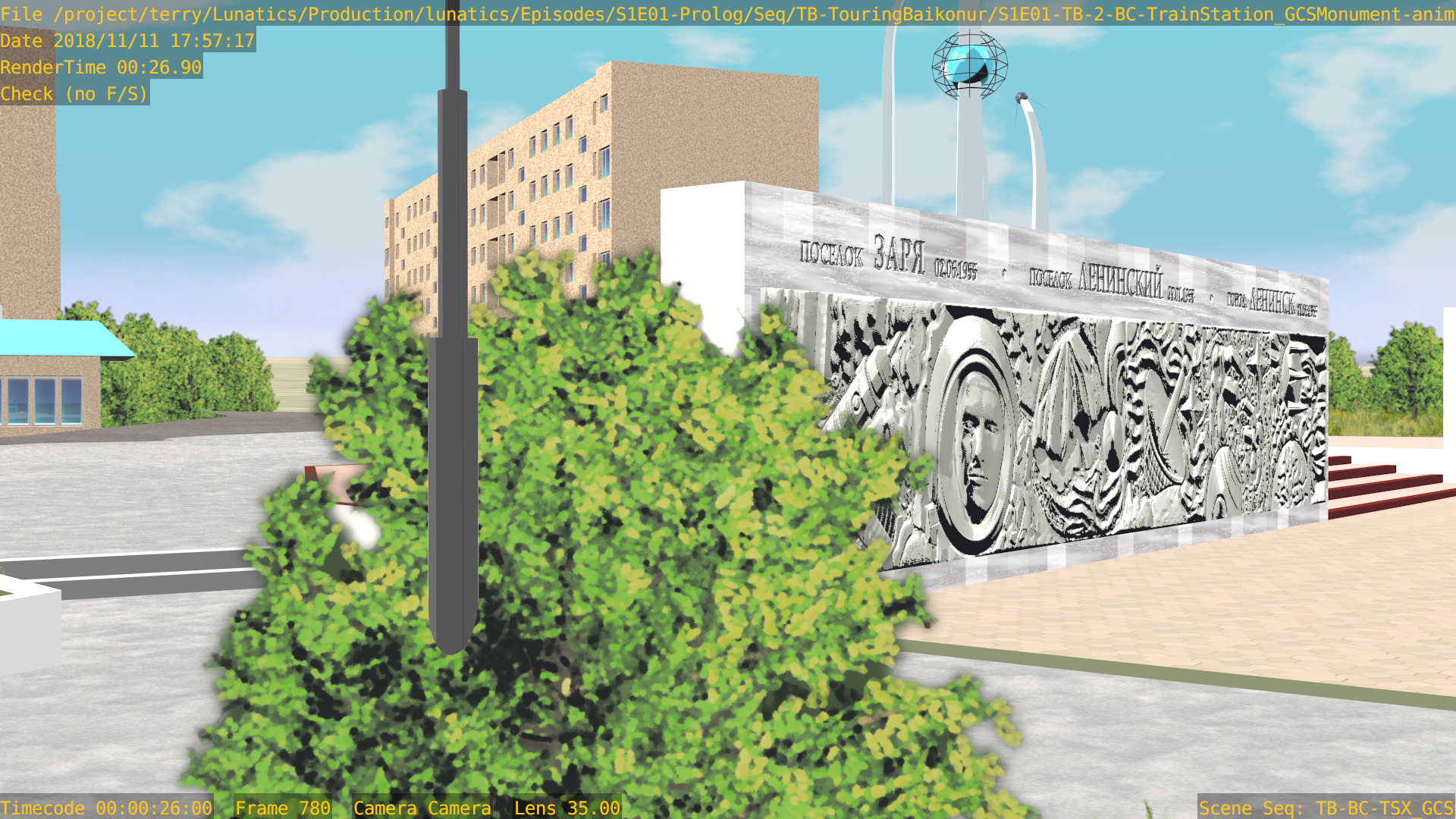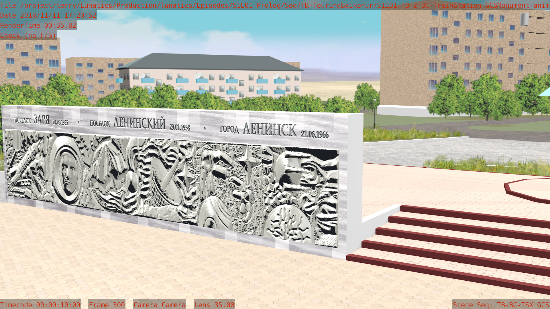 Or, we can have a non-sync “montage”, in which the animation files are accessed by a lot of separate “shot” scenes in the camera file. Like this one, for the “Touring Baikonur” sequence: