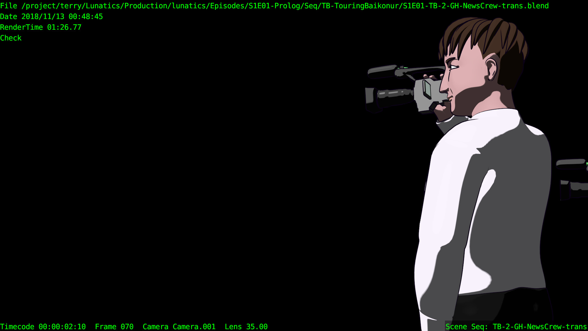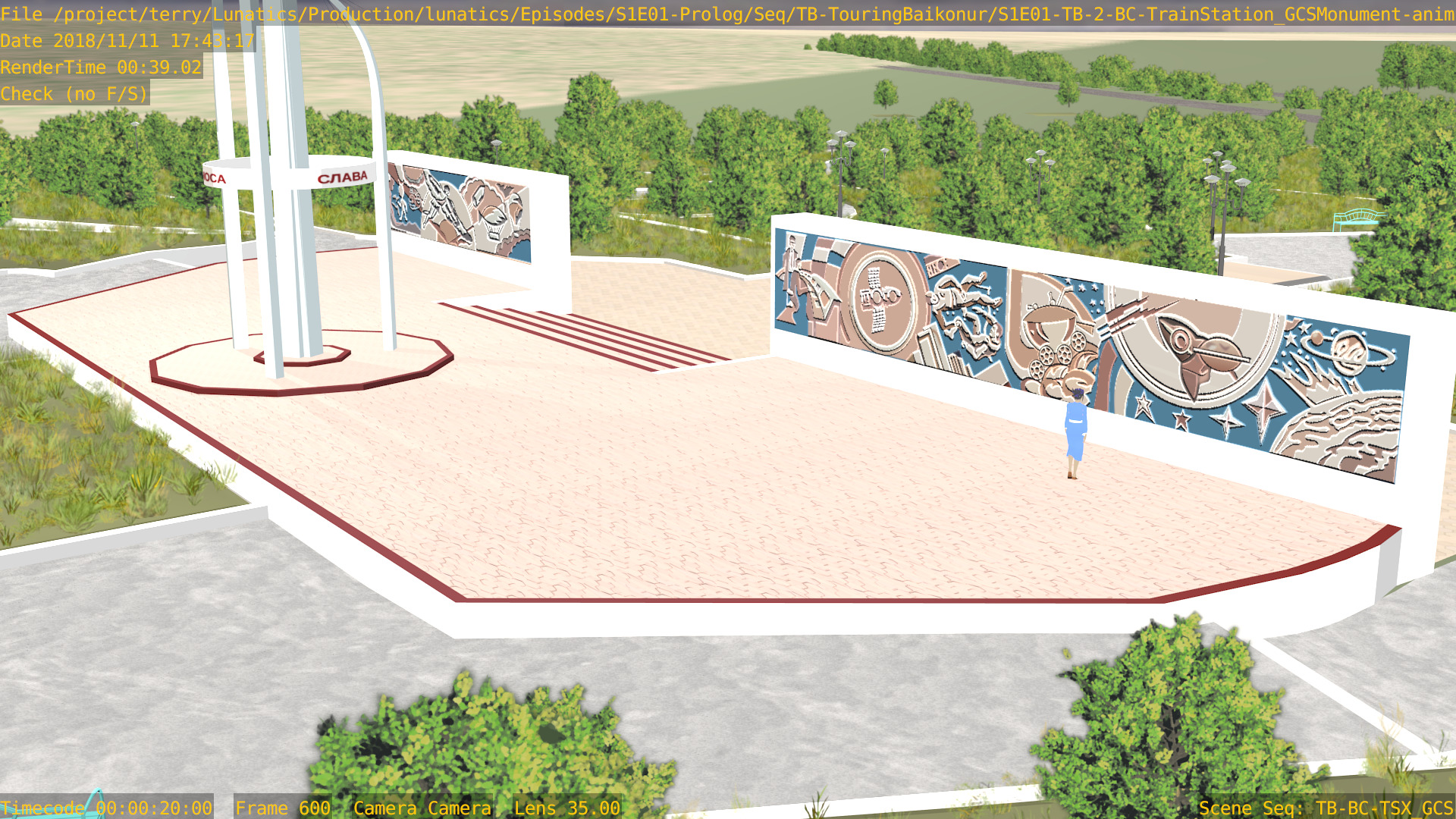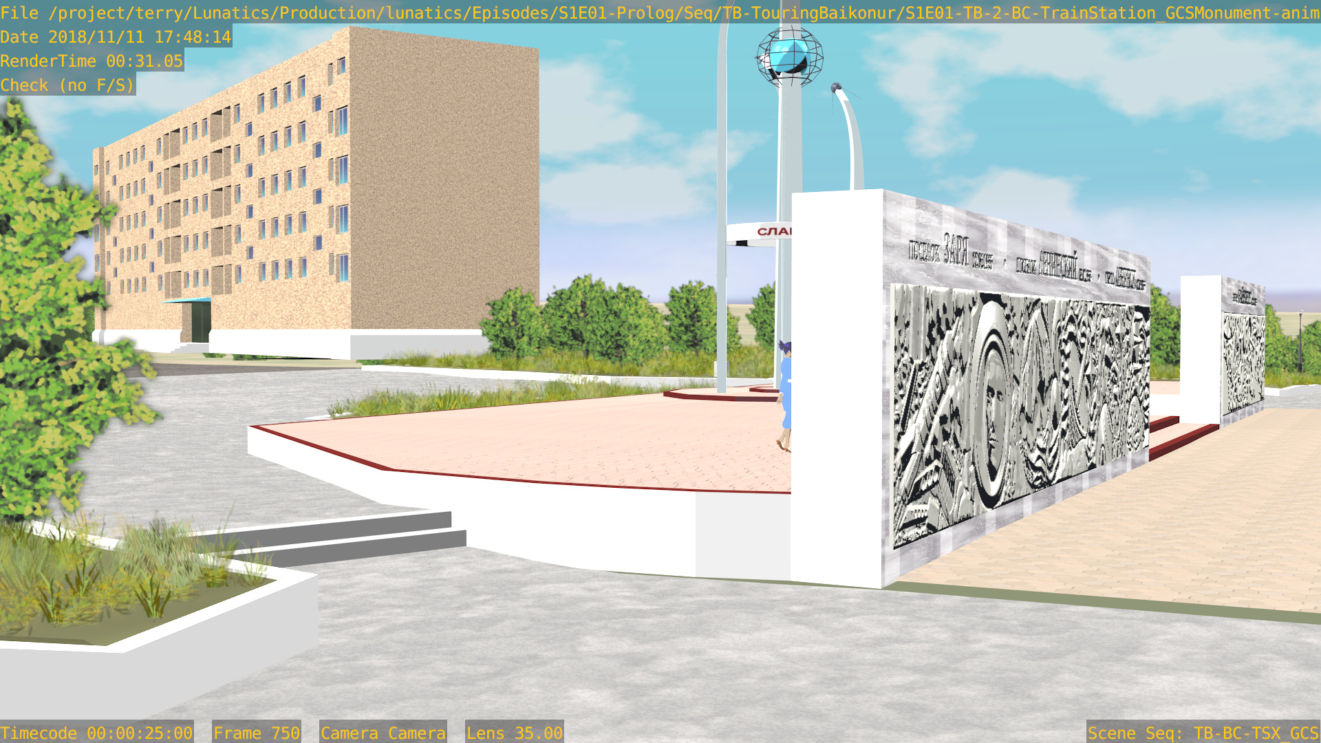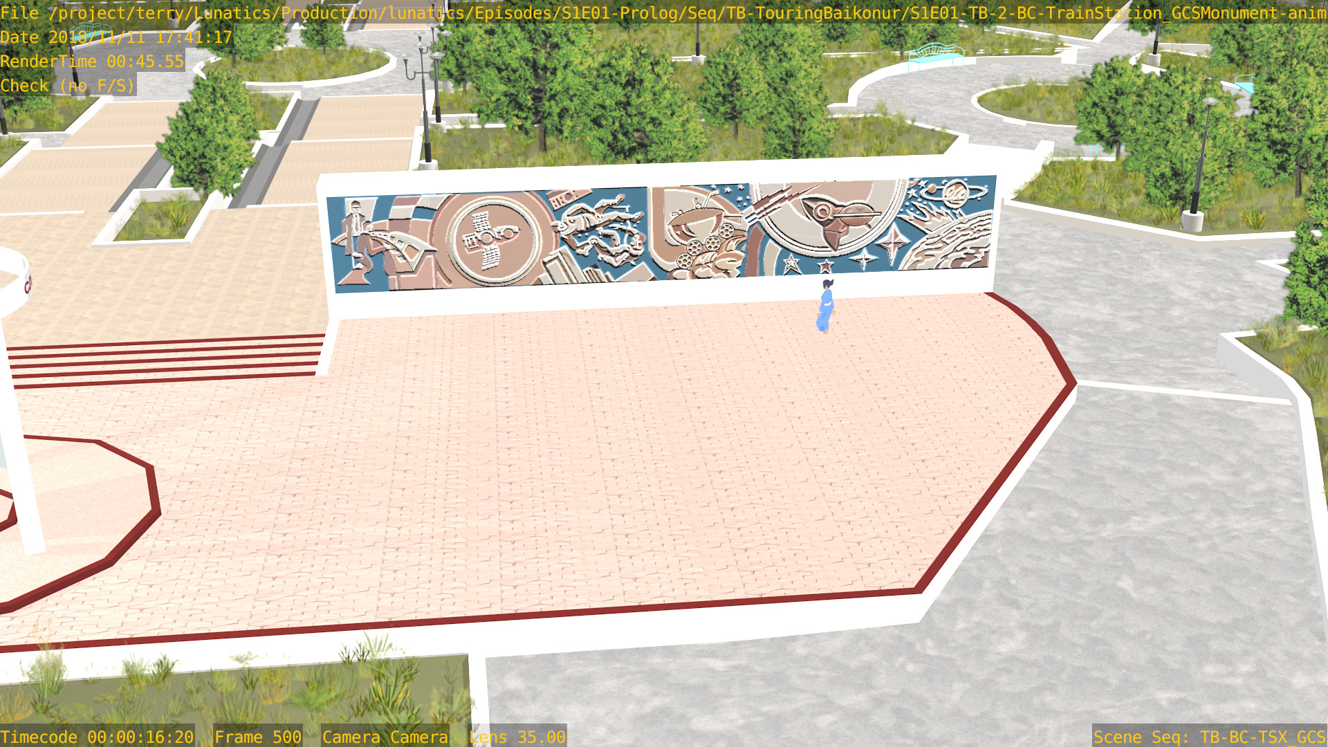 Or, we can have a non-sync “montage”, in which the animation files are accessed by a lot of separate “shot” scenes in the camera file. Like this one, for the “Touring Baikonur” sequence: