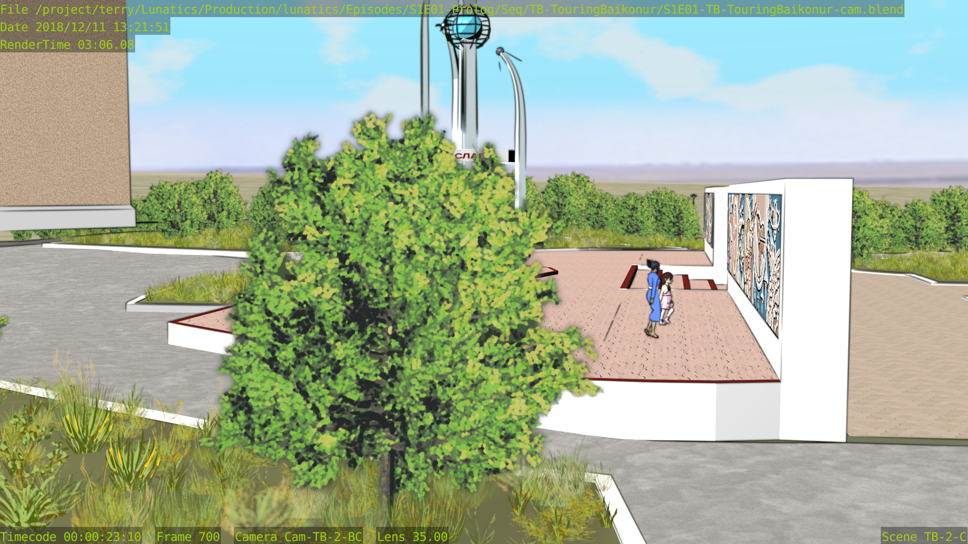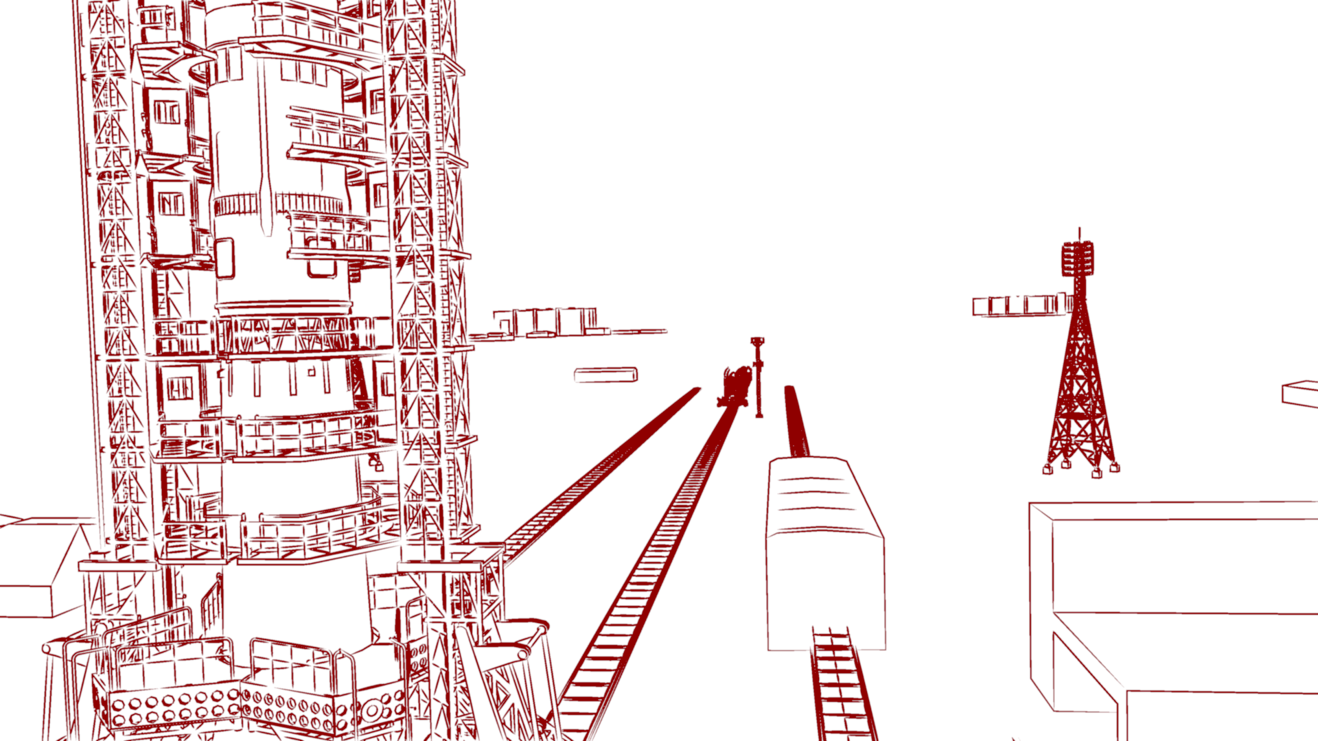 As for the quality, I still find that Freestyle looks better, although the difference likely wouldn’t be noticeable if I limited ink rendering strictly to the launchpad itself — which looks like it might be better to me. In these renders, the background towers are inked, and I think they probably would look better if left with only the color render.