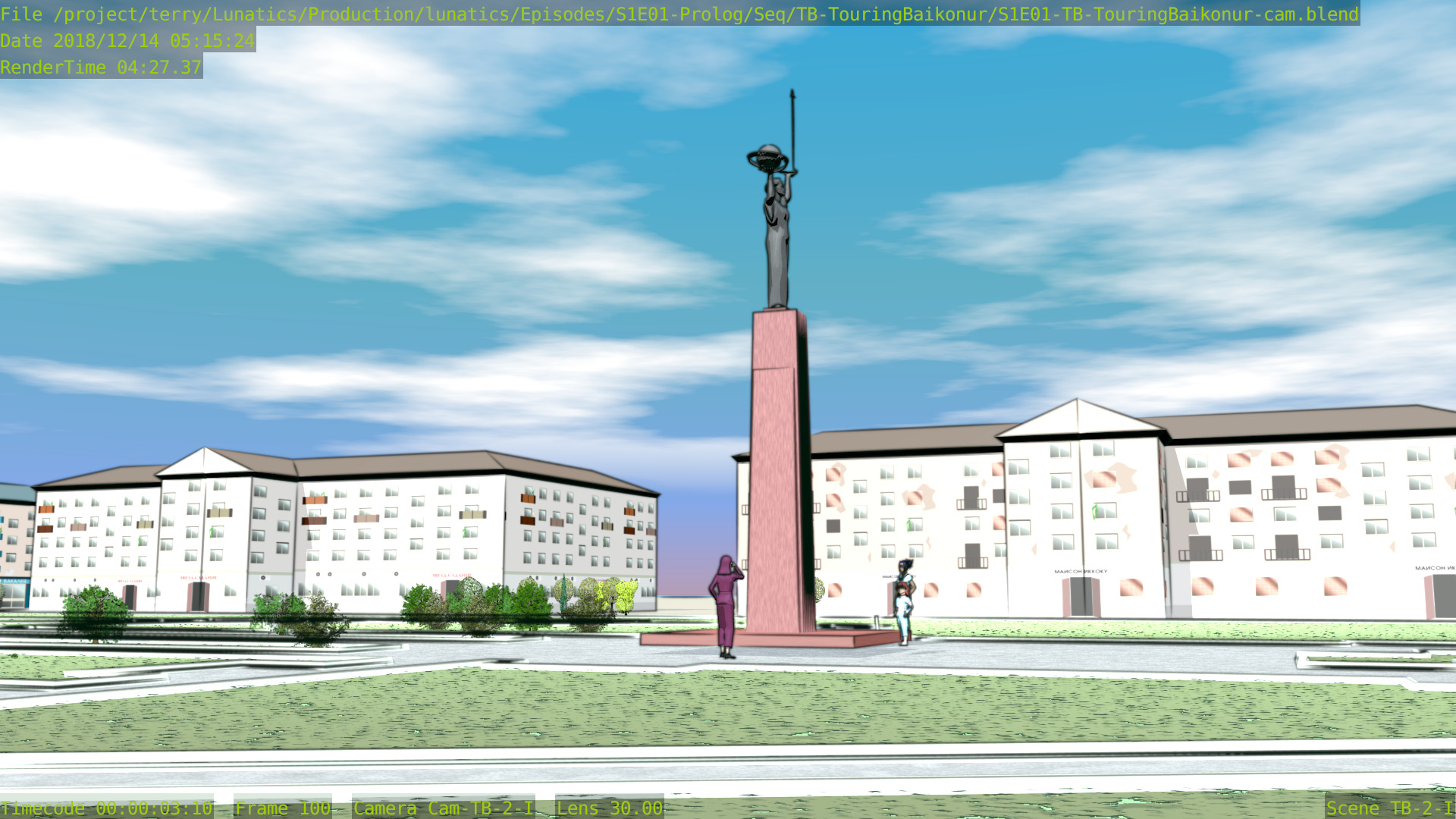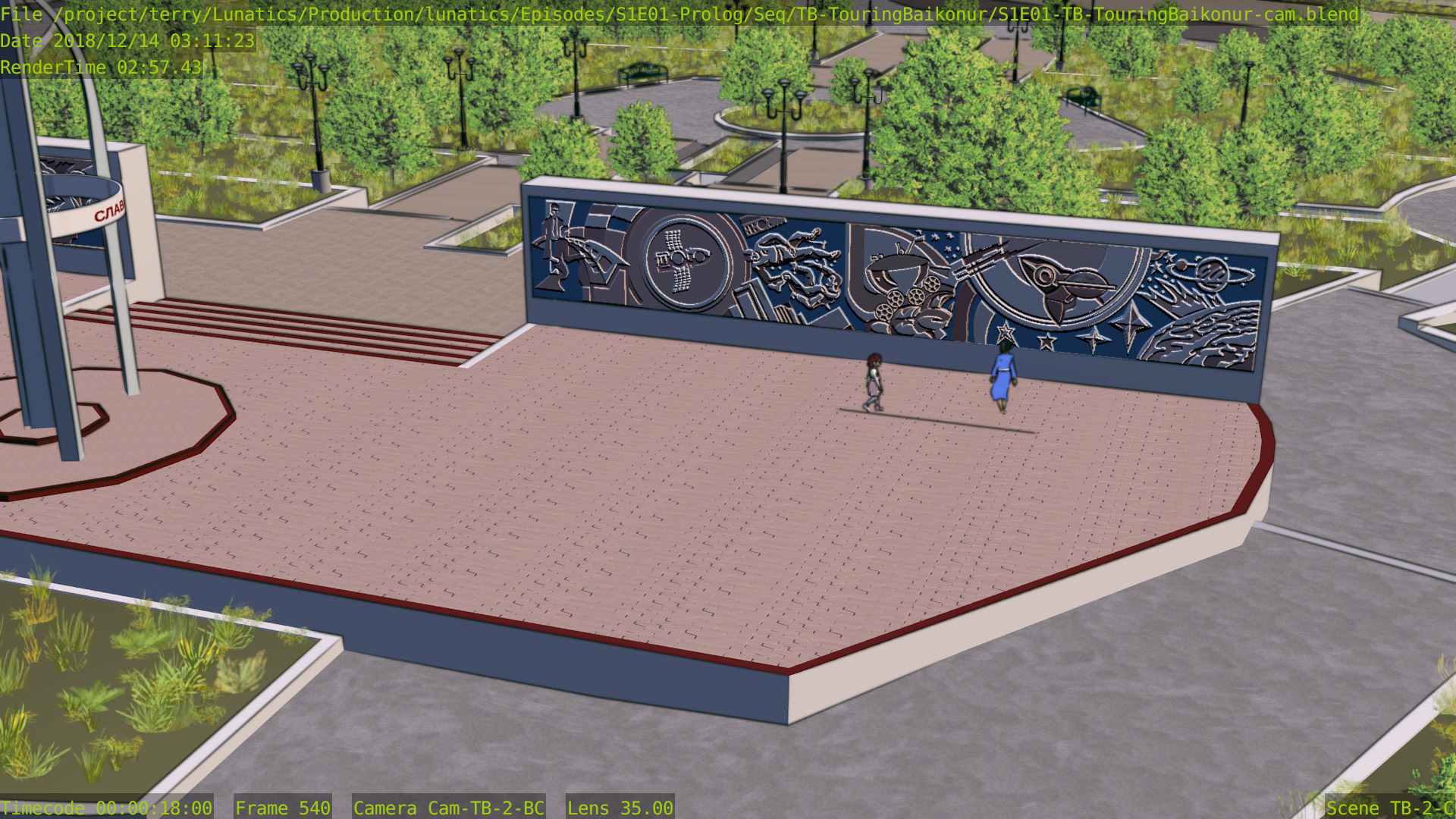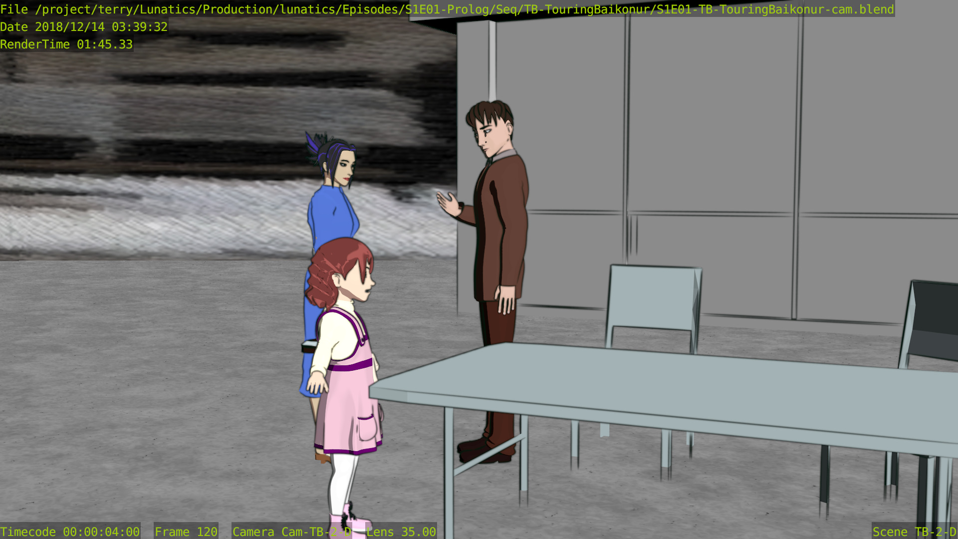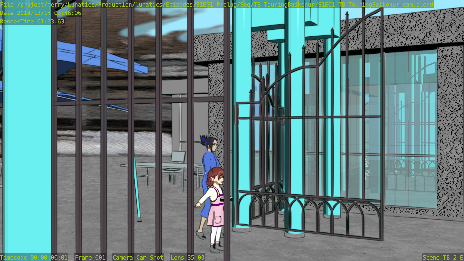 Still a few issues with this shot (mainly the distant background is missing some things), but at least the Freestyle setup is working properly now, and the lighting is better. Good enough to focus on other shots for awhile.