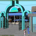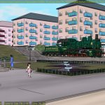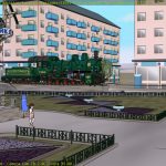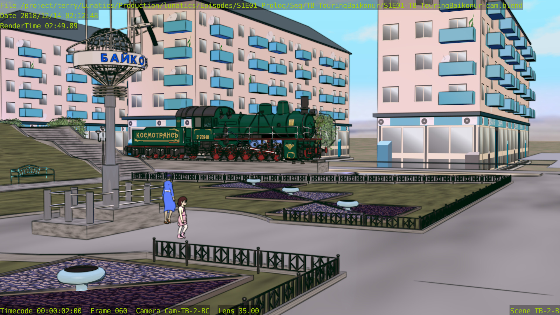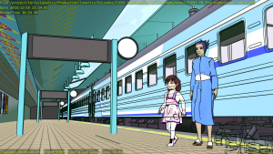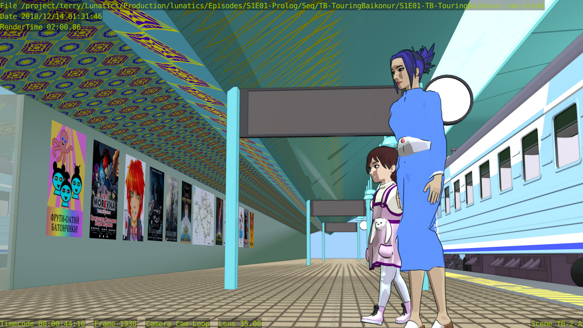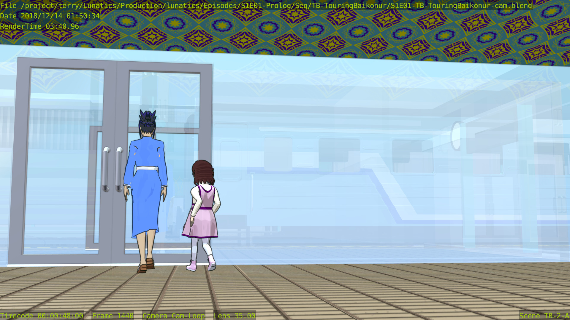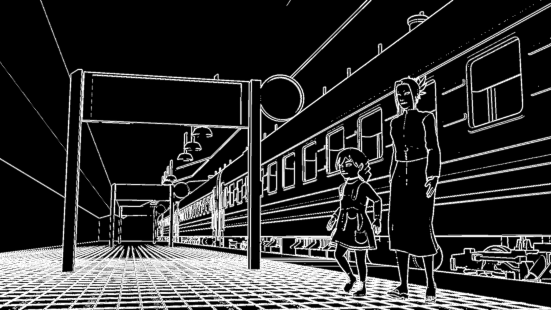 This shot is also missing a skyline backdrop in the far background, the extras (other people on the platform), and some additional set dressing.