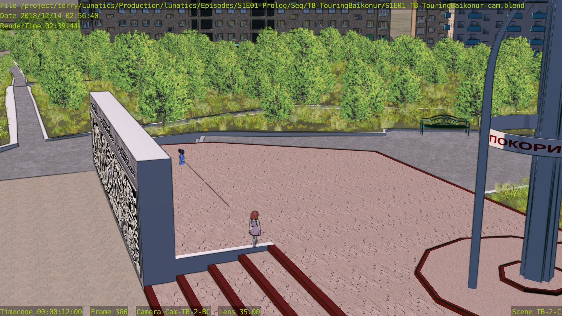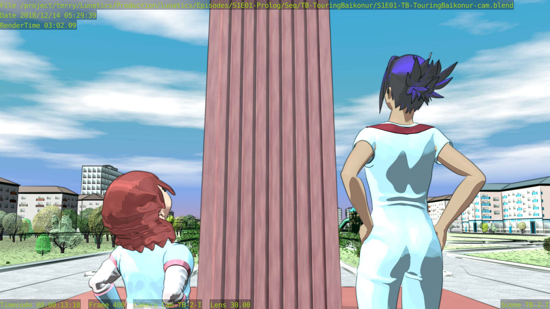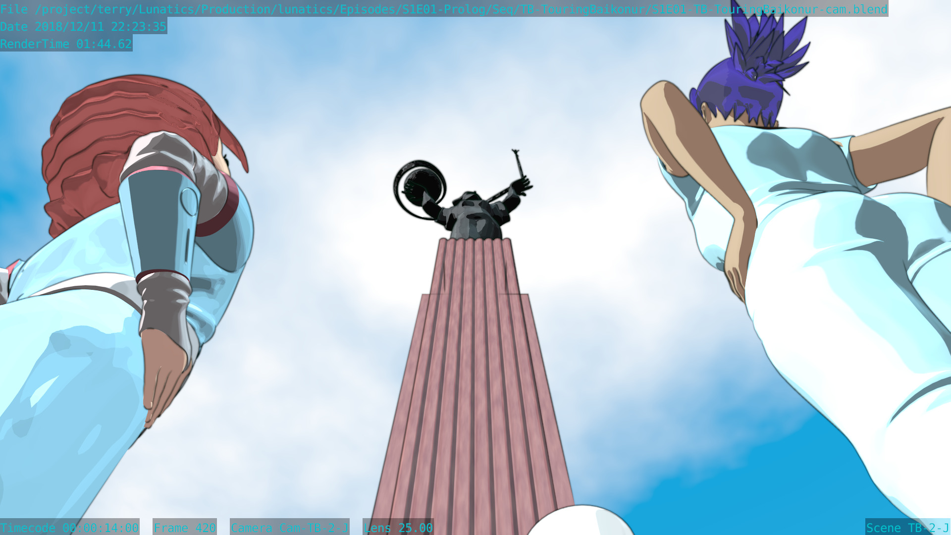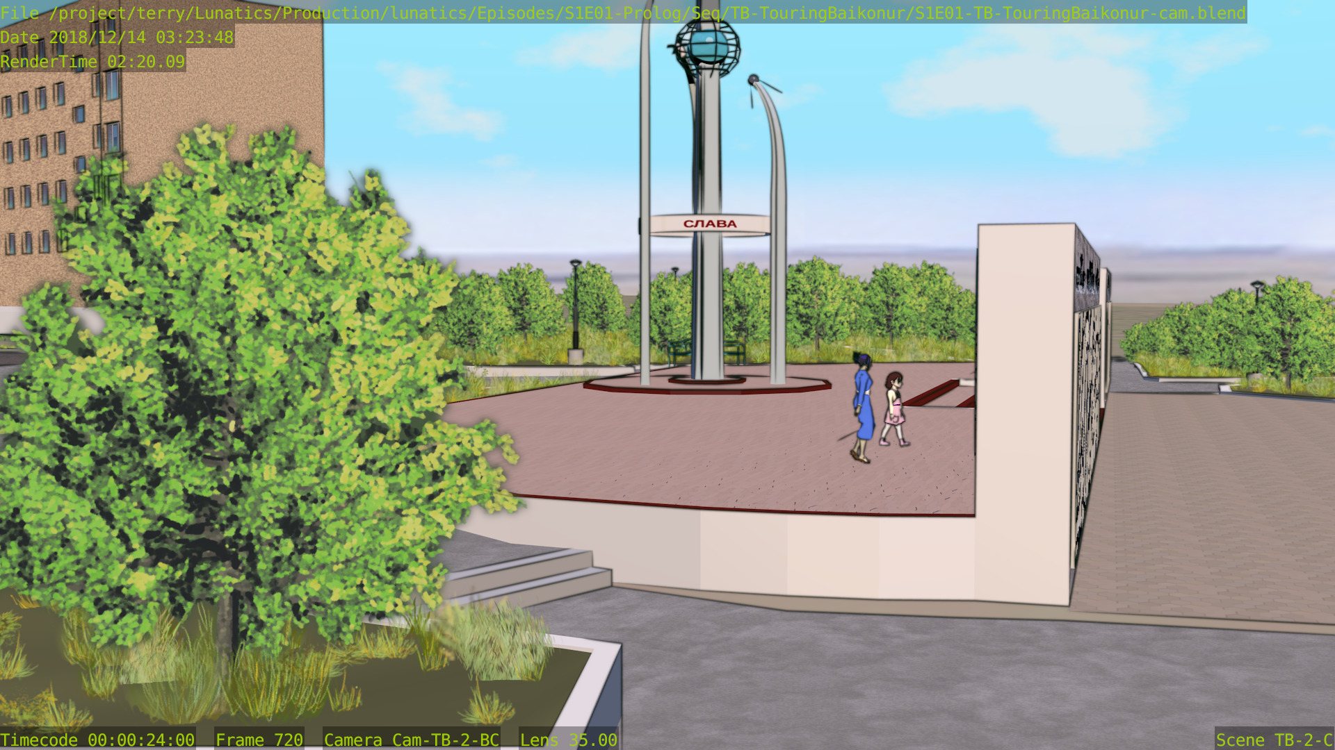 Still a few issues with this shot (mainly the distant background is missing some things), but at least the Freestyle setup is working properly now, and the lighting is better. Good enough to focus on other shots for awhile.
