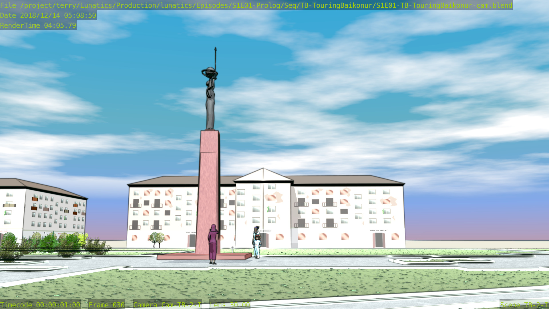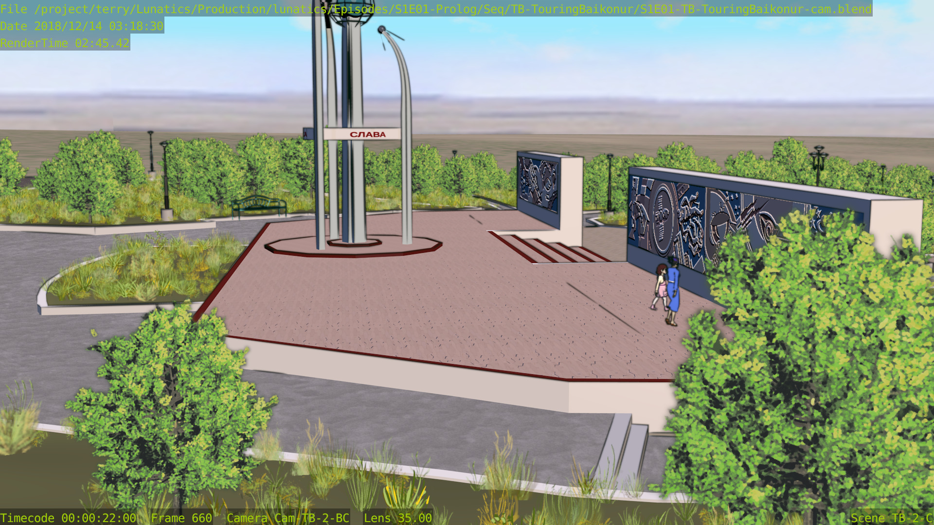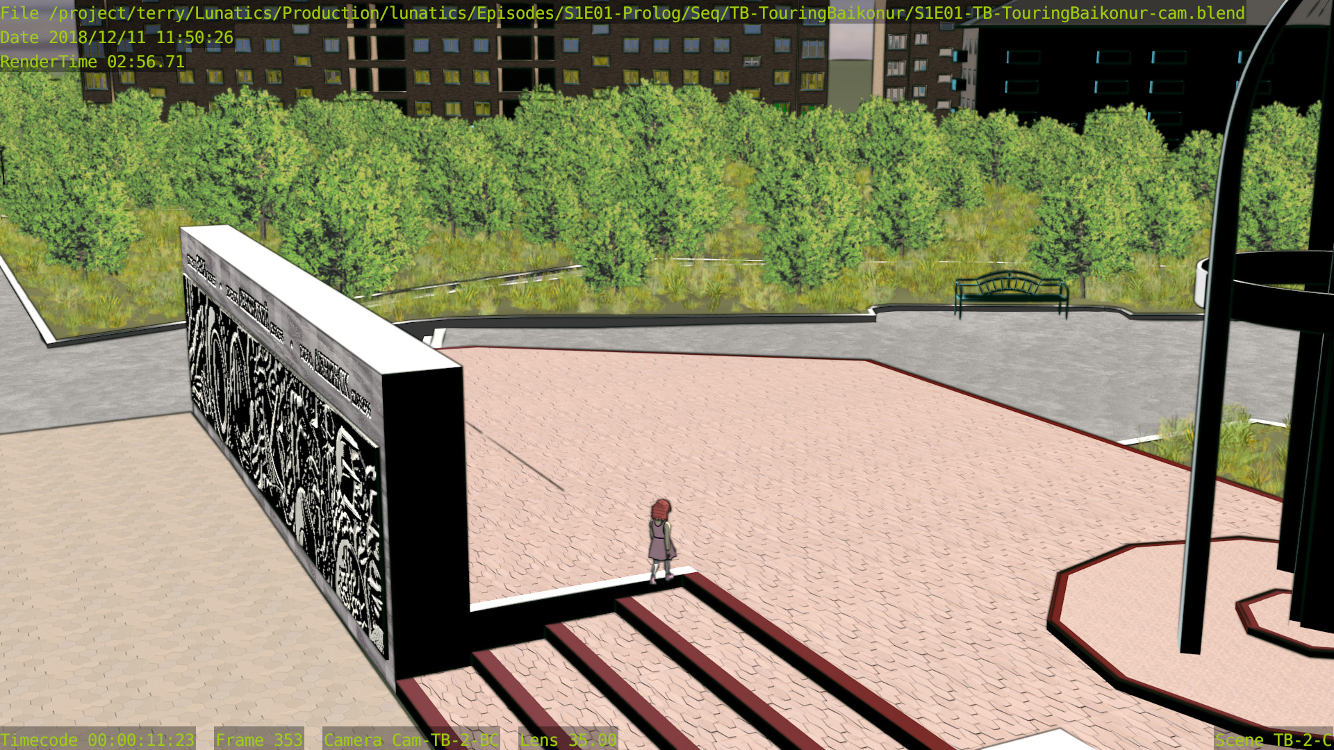 Still a few issues with this shot (mainly the distant background is missing some things), but at least the Freestyle setup is working properly now, and the lighting is better. Good enough to focus on other shots for awhile.