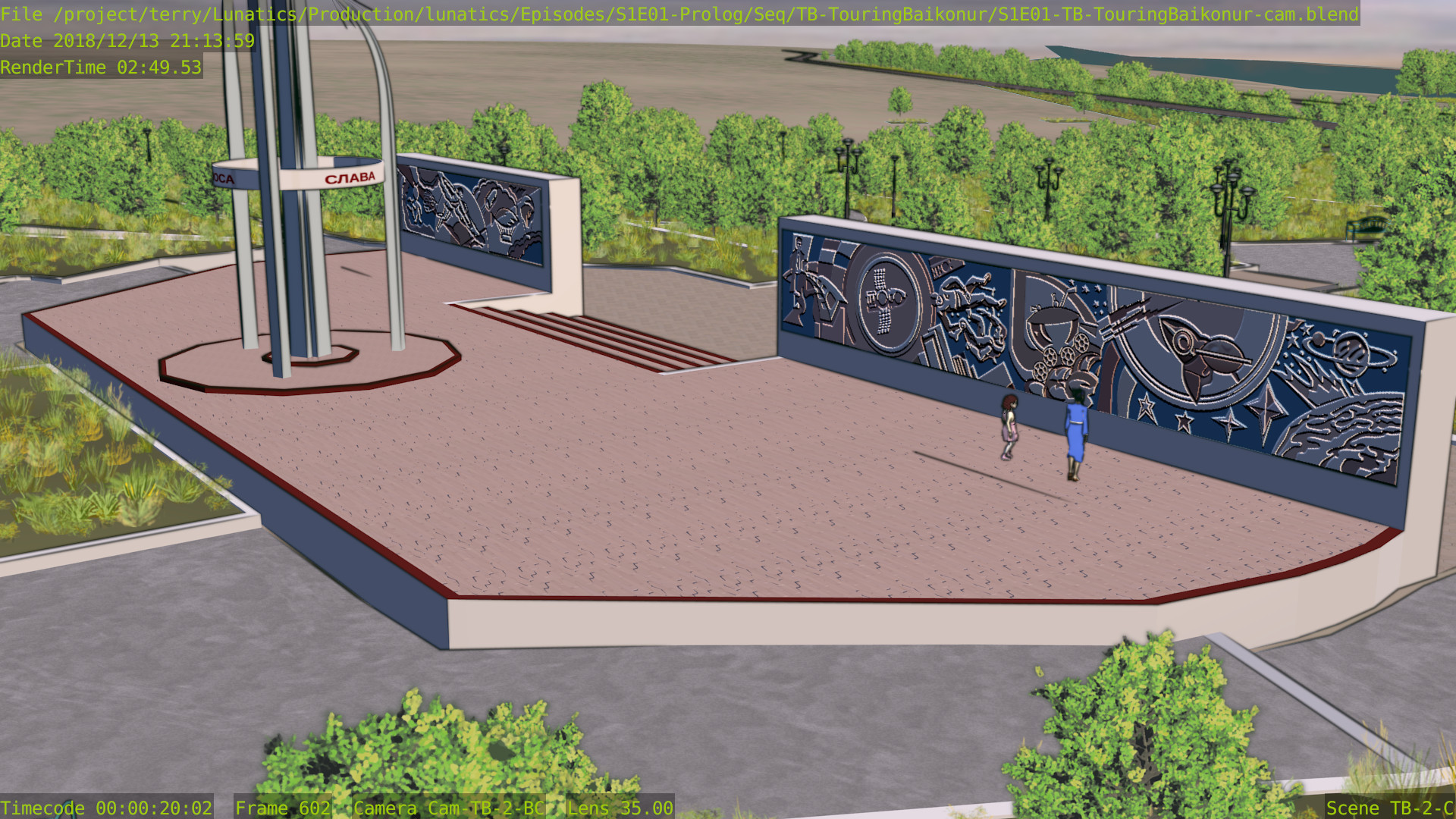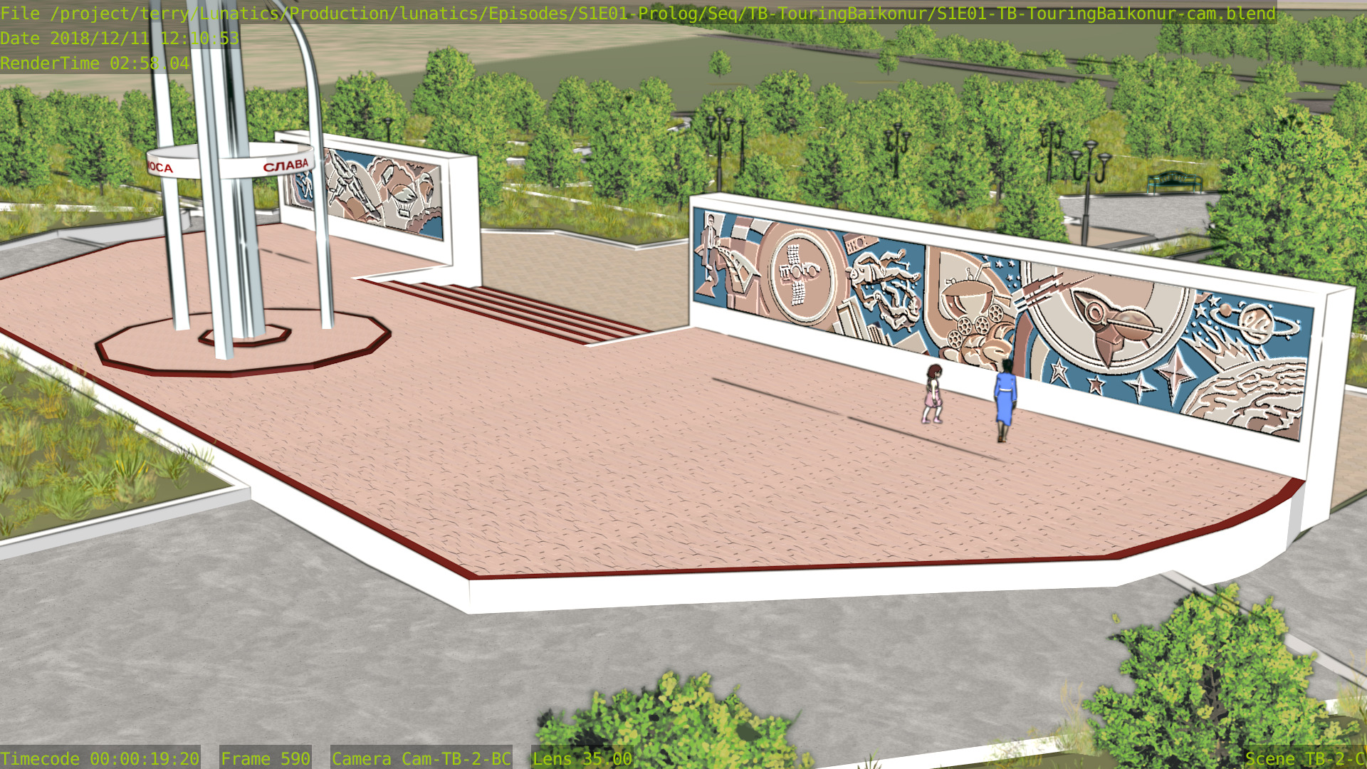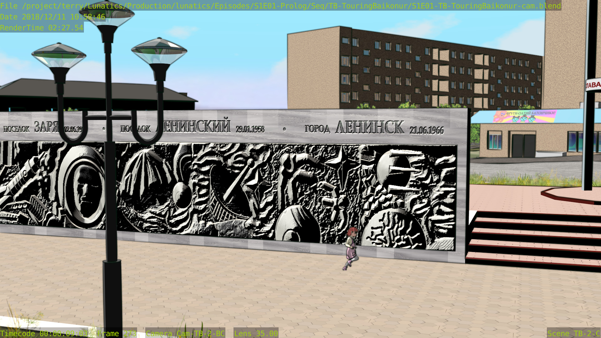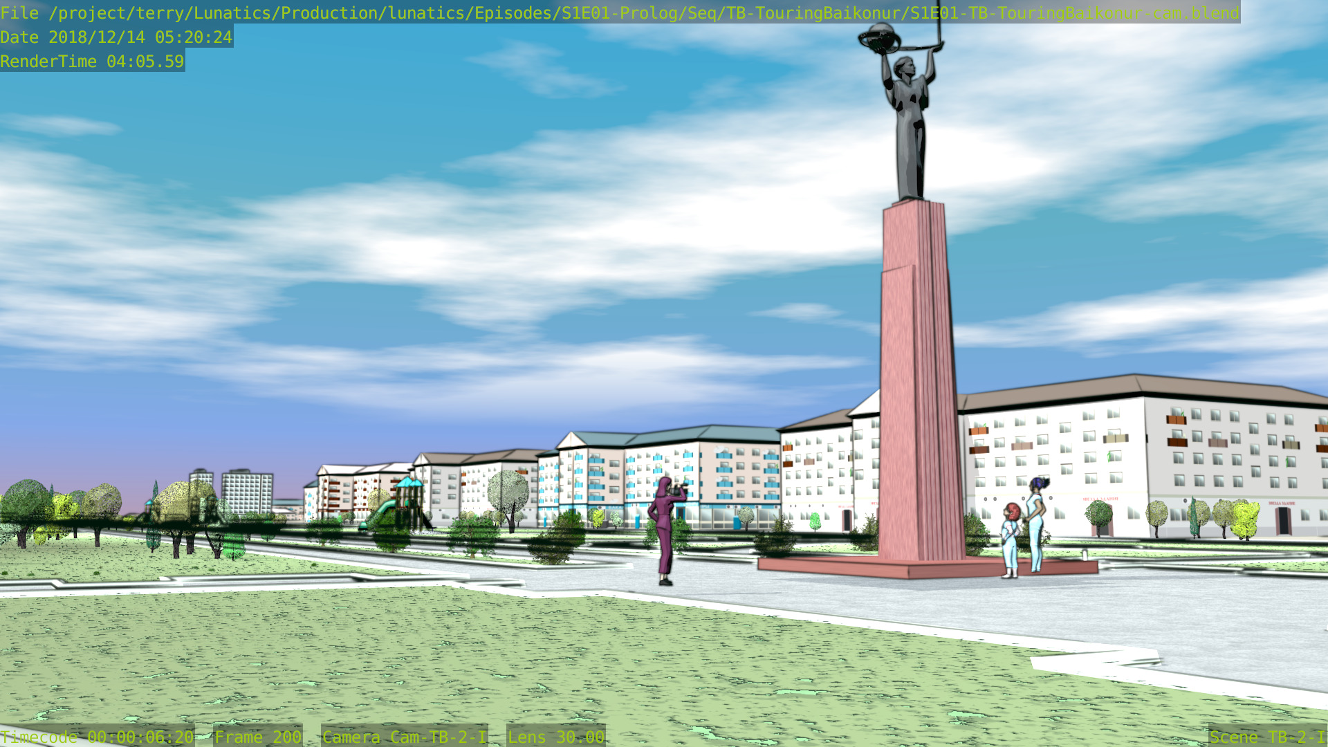 Still a few issues with this shot (mainly the distant background is missing some things), but at least the Freestyle setup is working properly now, and the lighting is better. Good enough to focus on other shots for awhile.