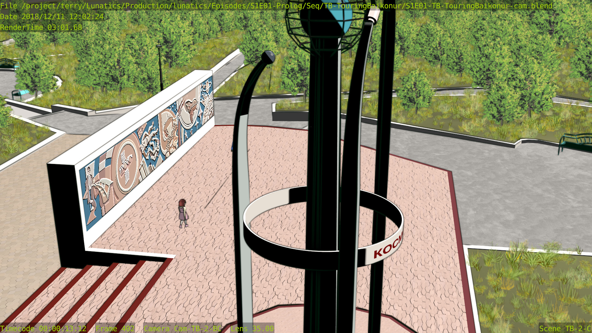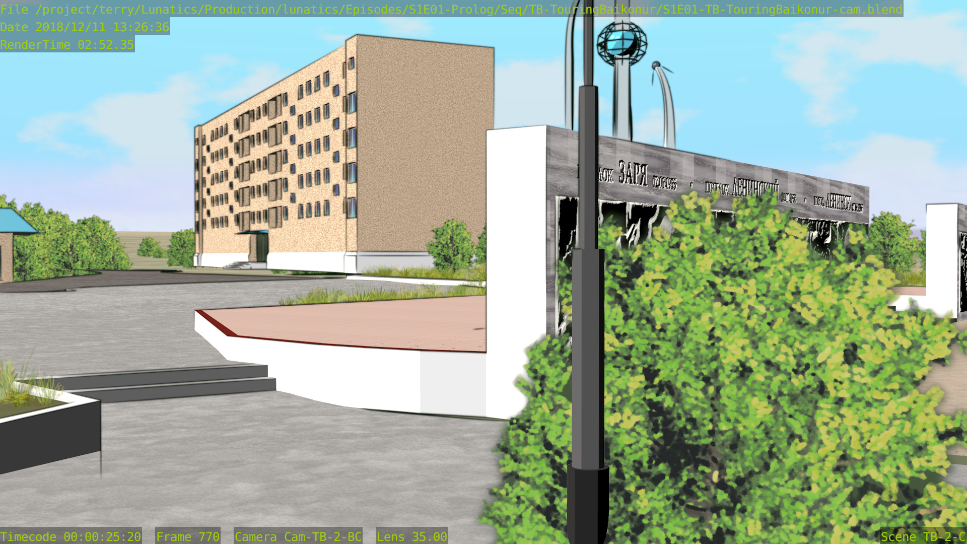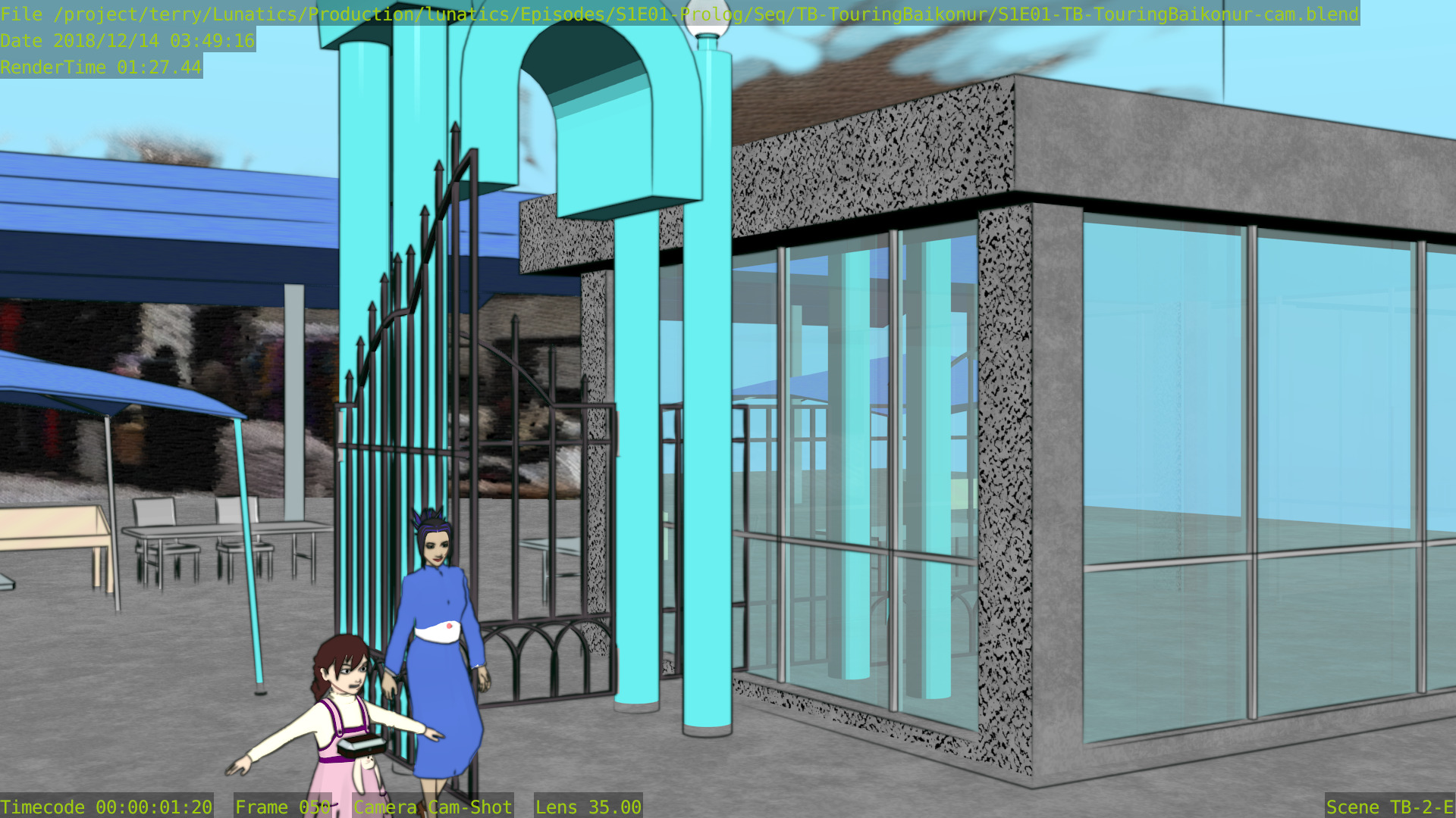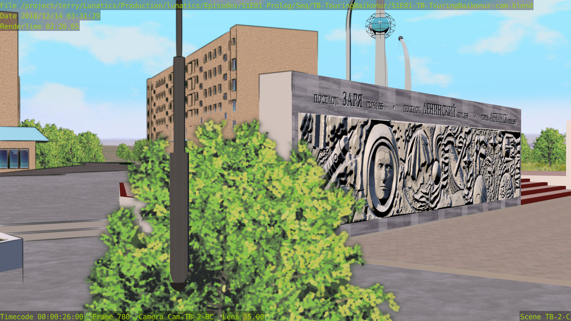 As for the quality, I still find that Freestyle looks better, although the difference likely wouldn’t be noticeable if I limited ink rendering strictly to the launchpad itself — which looks like it might be better to me. In these renders, the background towers are inked, and I think they probably would look better if left with only the color render.
