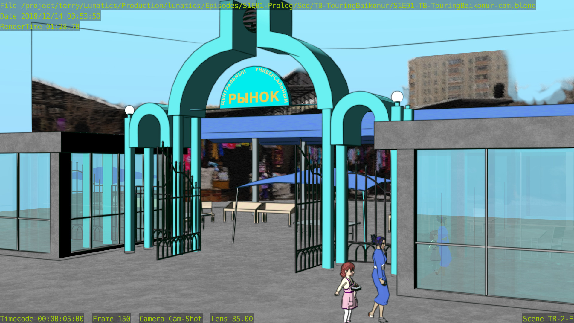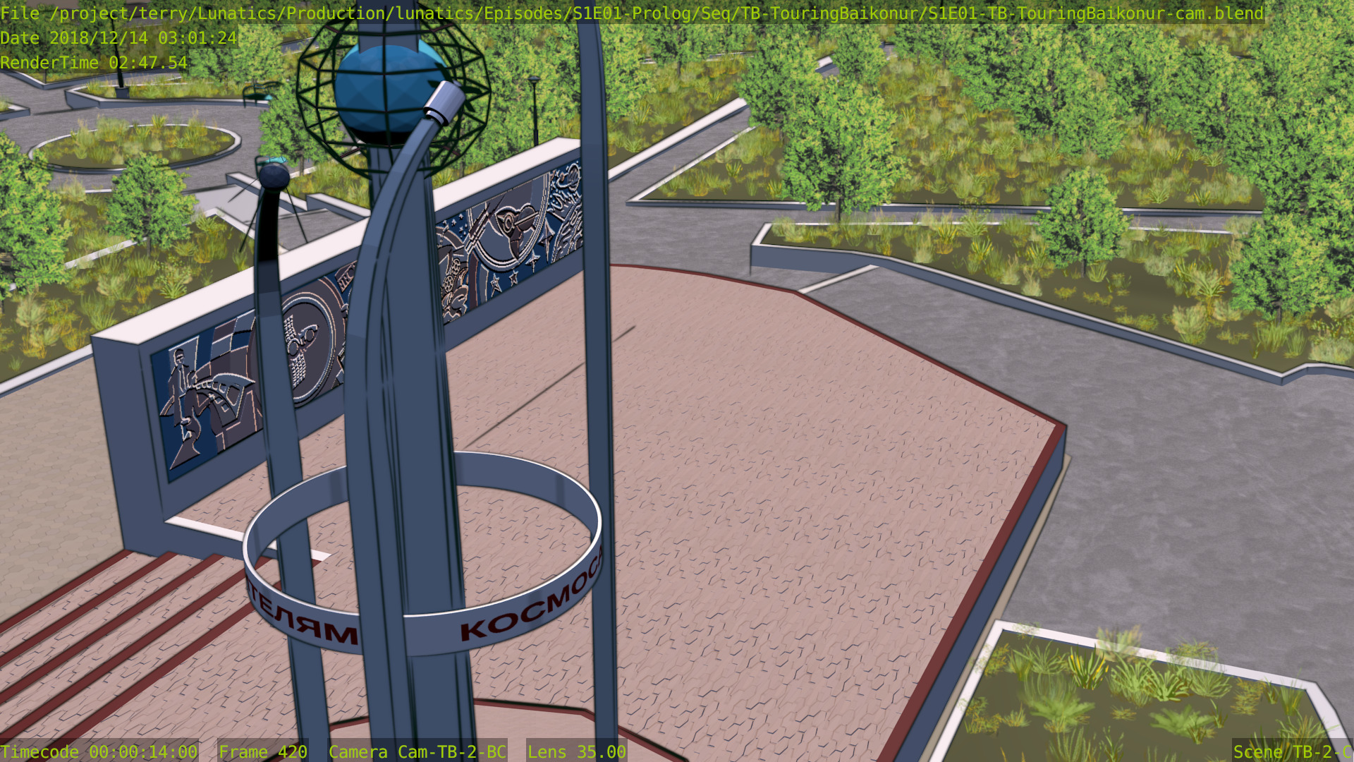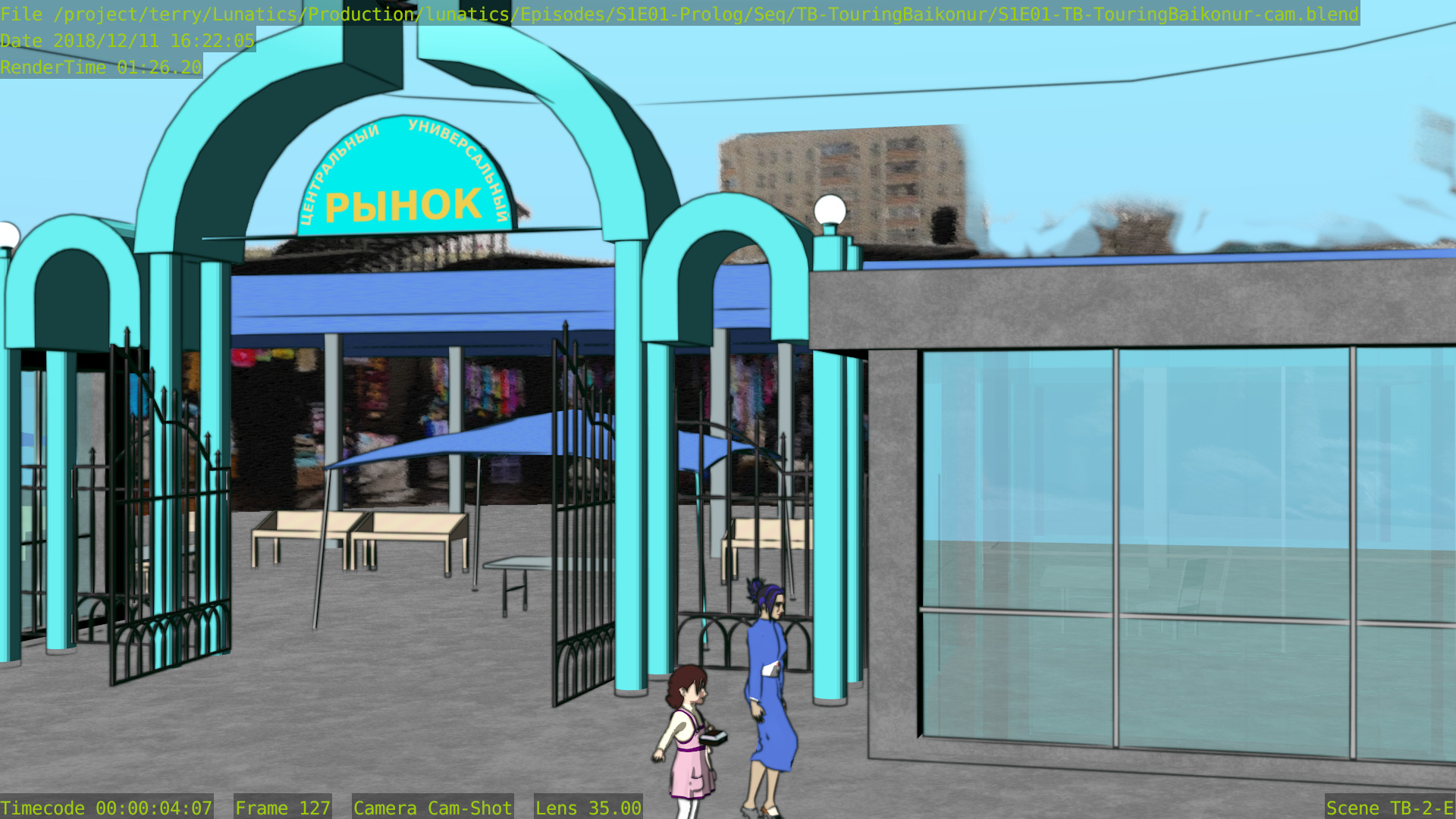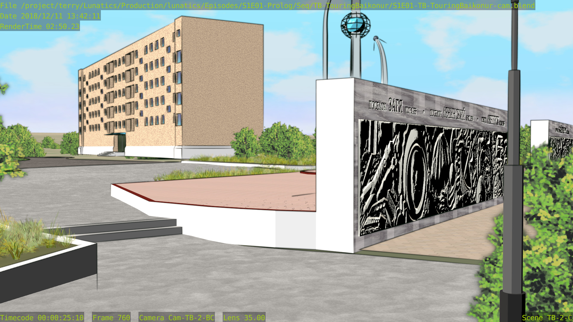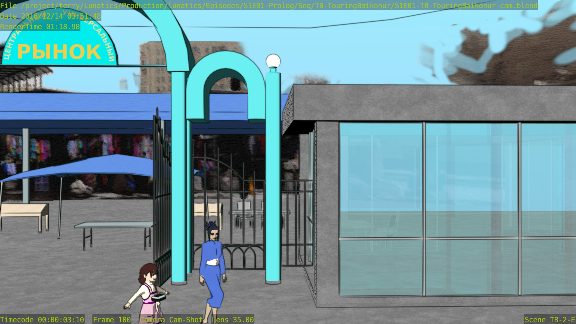 As for the quality, I still find that Freestyle looks better, although the difference likely wouldn’t be noticeable if I limited ink rendering strictly to the launchpad itself — which looks like it might be better to me. In these renders, the background towers are inked, and I think they probably would look better if left with only the color render.