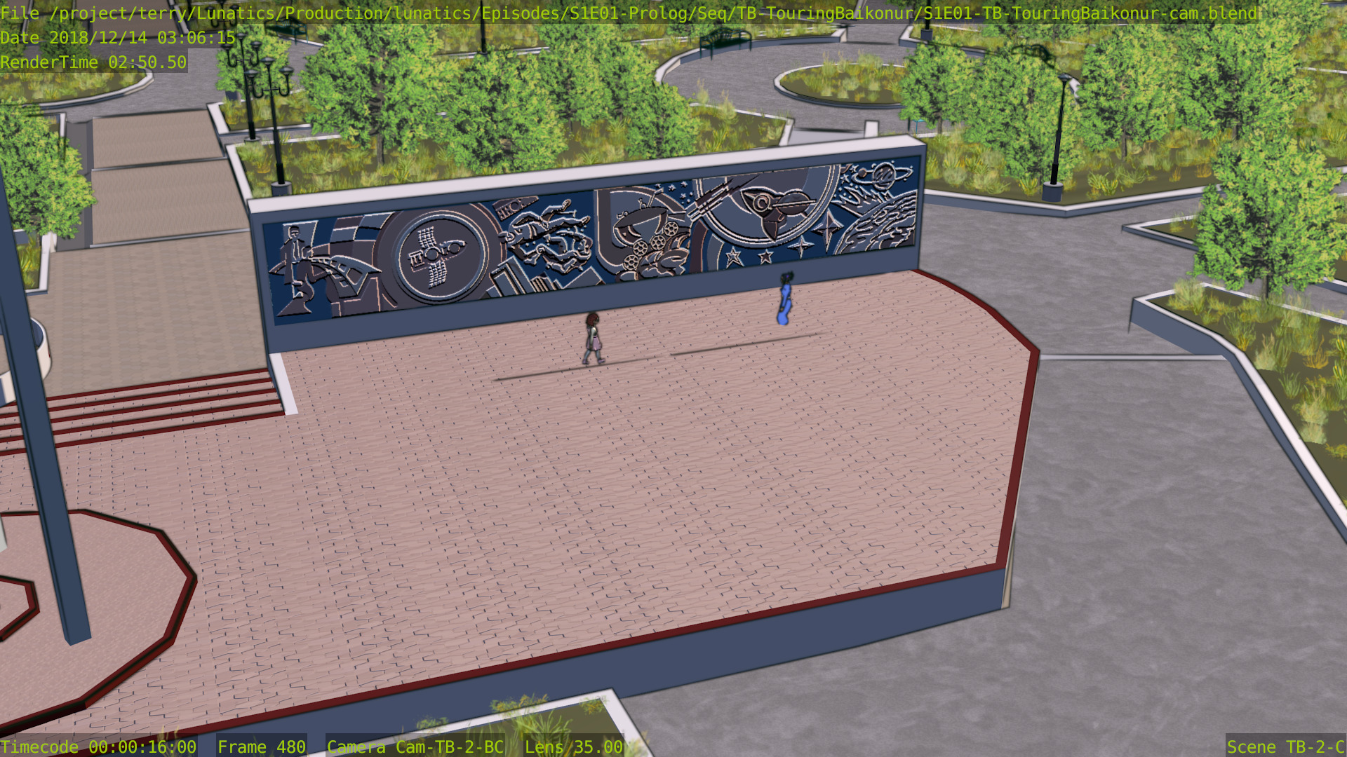 The Blender files here are all “packed”, meaning that binary resources such as texture files are embedded in them, eliminating the need to distribute a separate “textures” directory (in most cases, although it’s still necessary for video textures which can’t be packed — although there are none in this sequence).