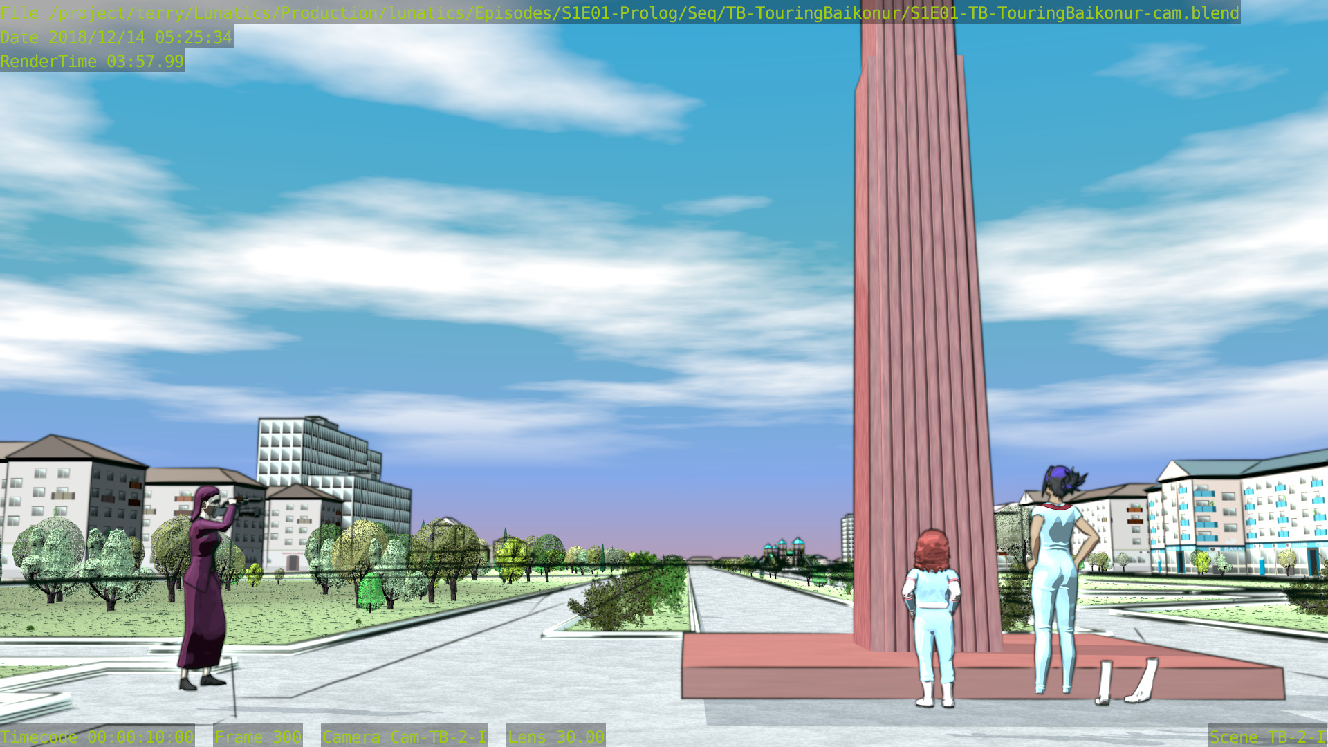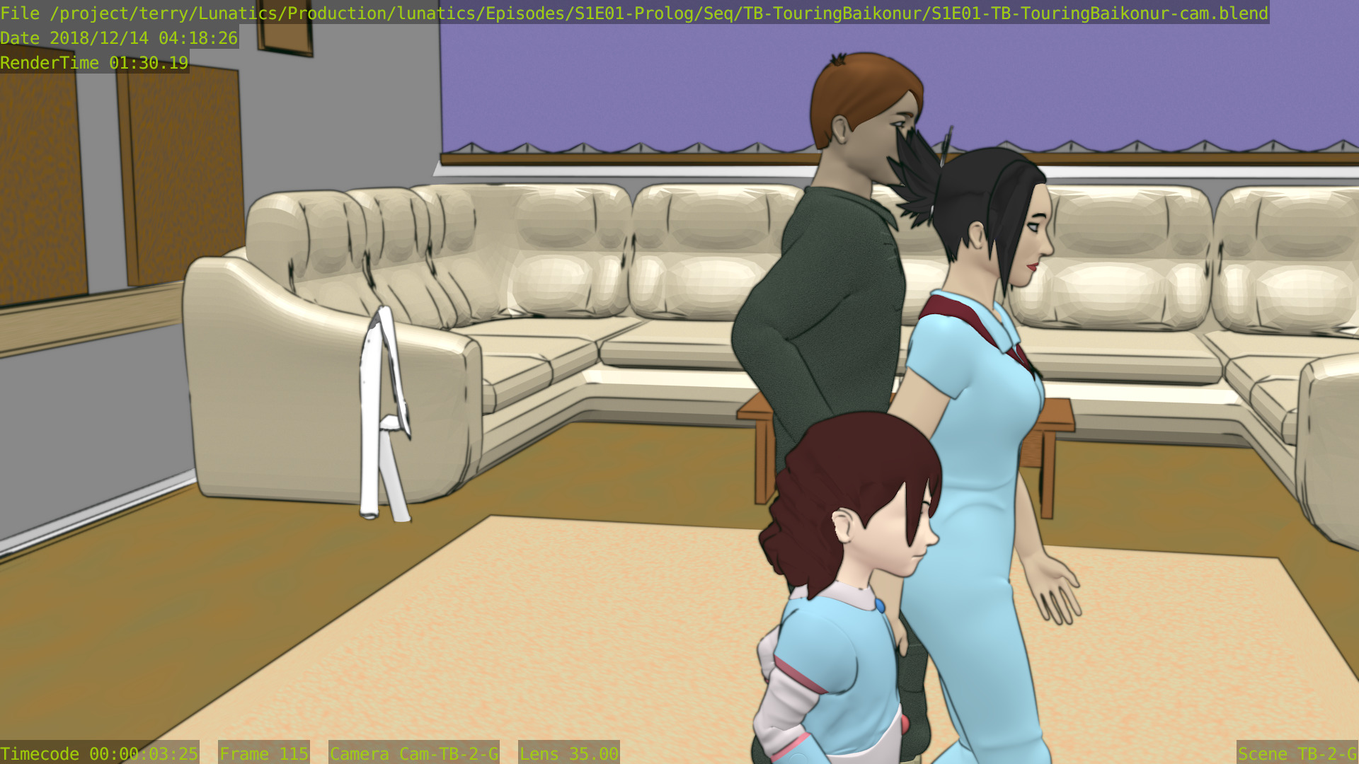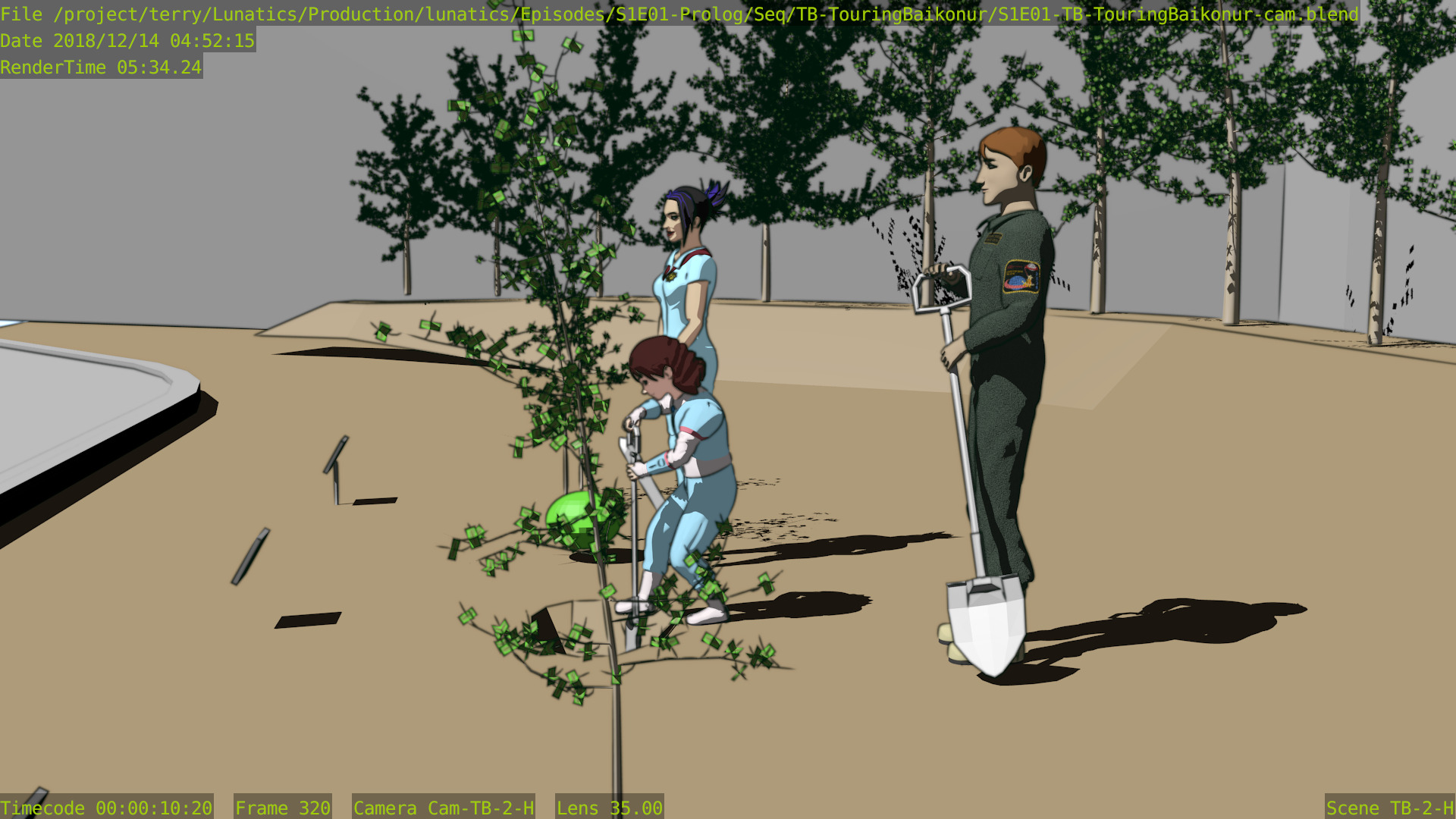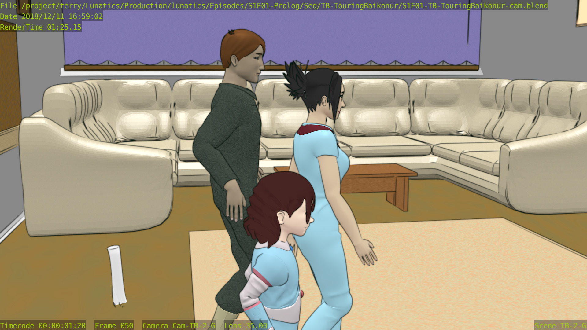 There is some possibility that the library Blender files will be shared between different sequences so that they won’t necessarily add up, however the advantage will probably be small in this pilot episode which uses a lot of different sets and multiple character models (partly because of costume changes and partly because there are a lot of supporting characters in the pilot).