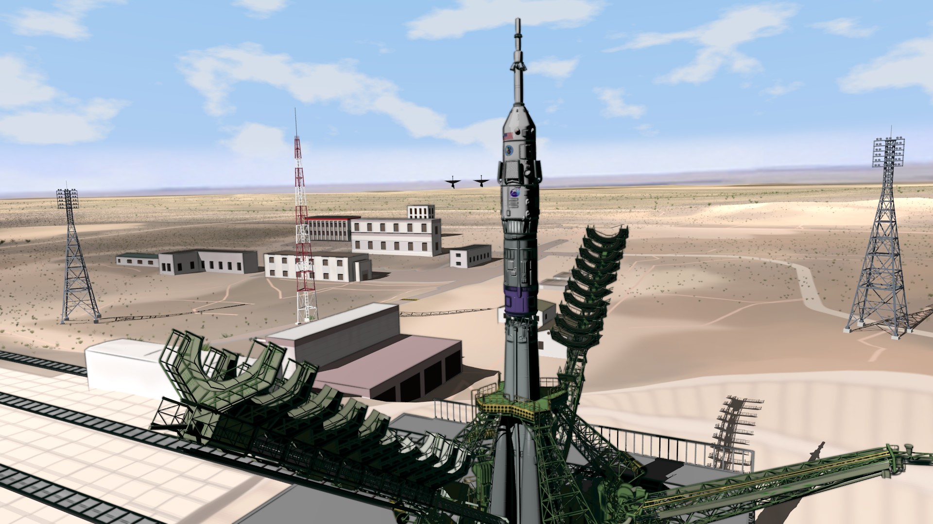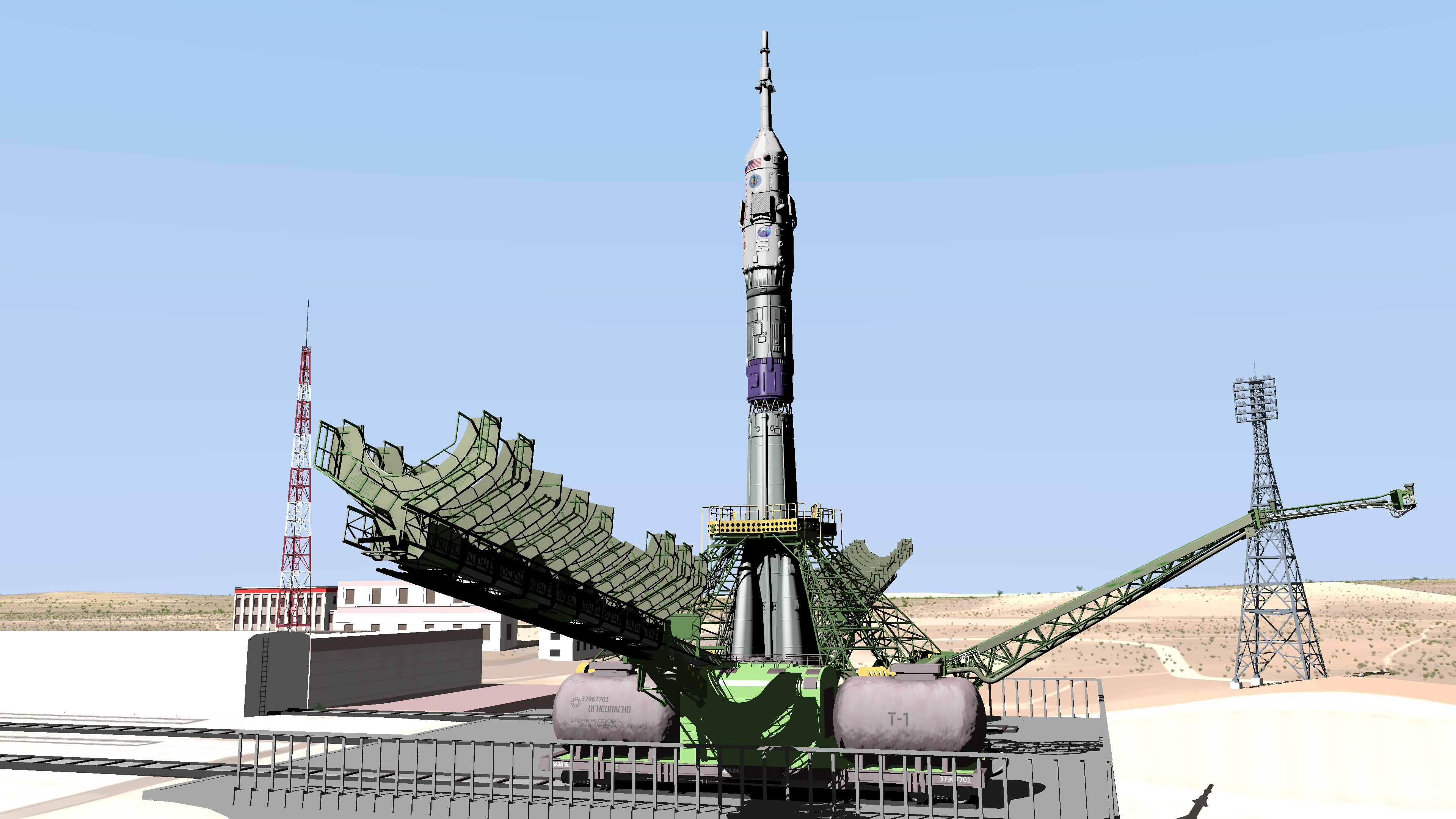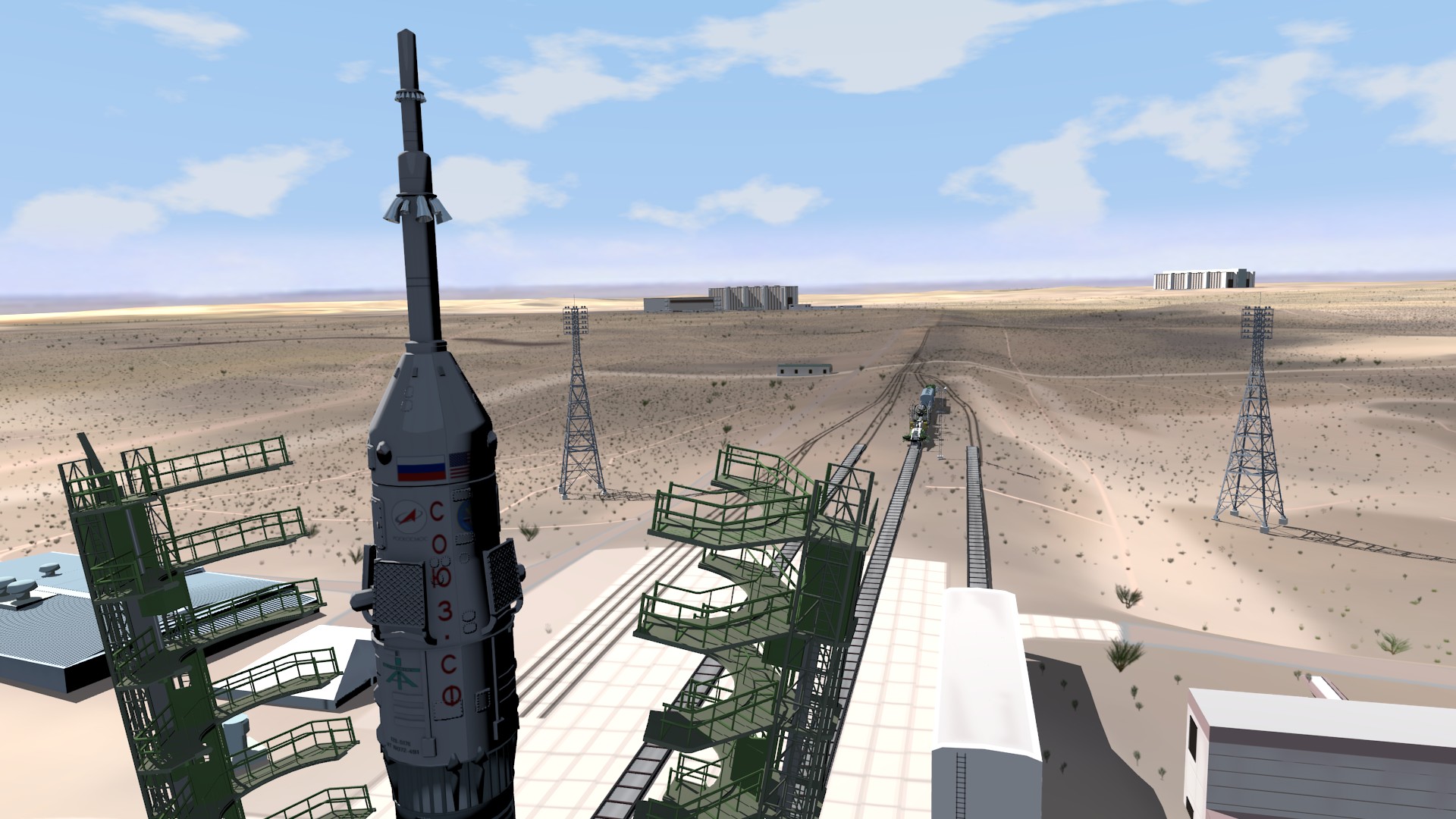 We have a number of sets that are in a halfway state like this one. It’s almost done, but I still have some additions to make. I’m planning to put a mural on the end wall that says something like “Welcome to Baikonur” with some appropriate art. The displays will also have active text and clockfaces (possibly animated).
