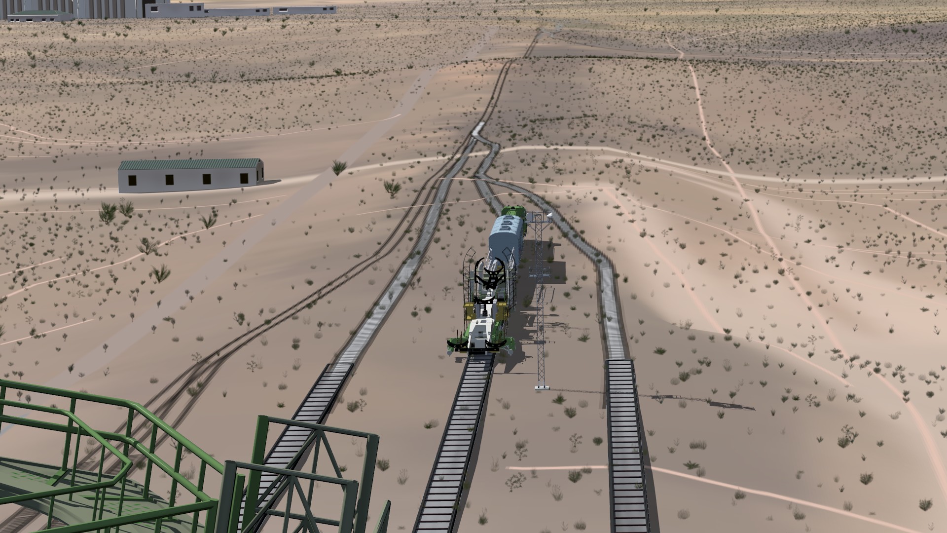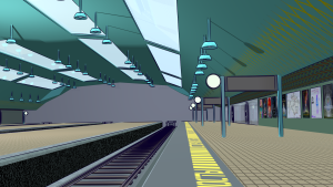 Of course, anyone who’s been to or seen pictures of the train station in Baikonur will know it doesn’t really look like this — in fact, it’s an outdoor platform. The premise here is that it gets upgraded sometime between now and 2040. Mainly because I had this great ambience track, which was clearly from an indoor train platform — so I made a set that matched it.