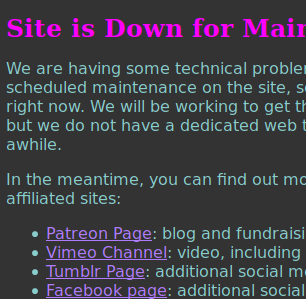 We are also in the middle of migrating it onto a new server, though. So likely it’ll be down for a few days until we can finish the migration.