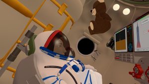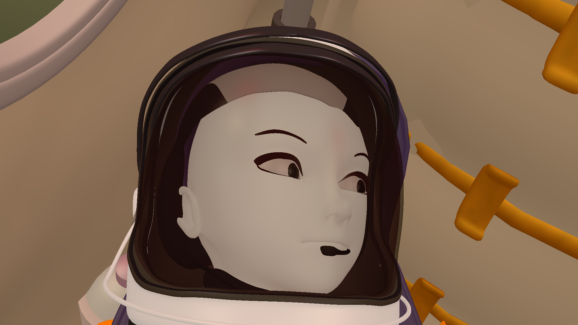 This has been bugging me for awhile. Earlier, we had the entire helmet following the character’s “head” armature bone, then we changed it to stay with their “chest” bone, but then the communications cap was also changed, which just looked silly:
